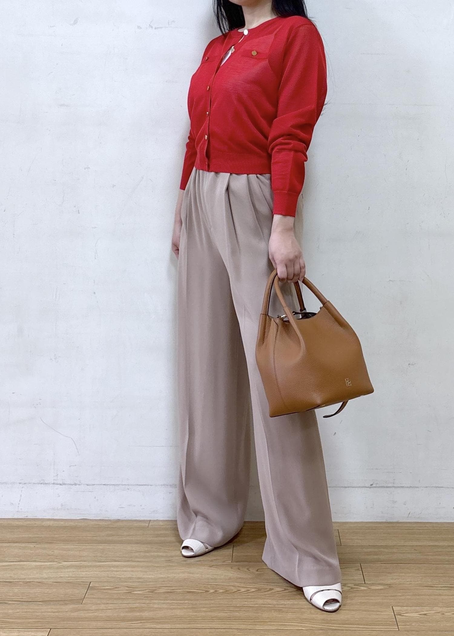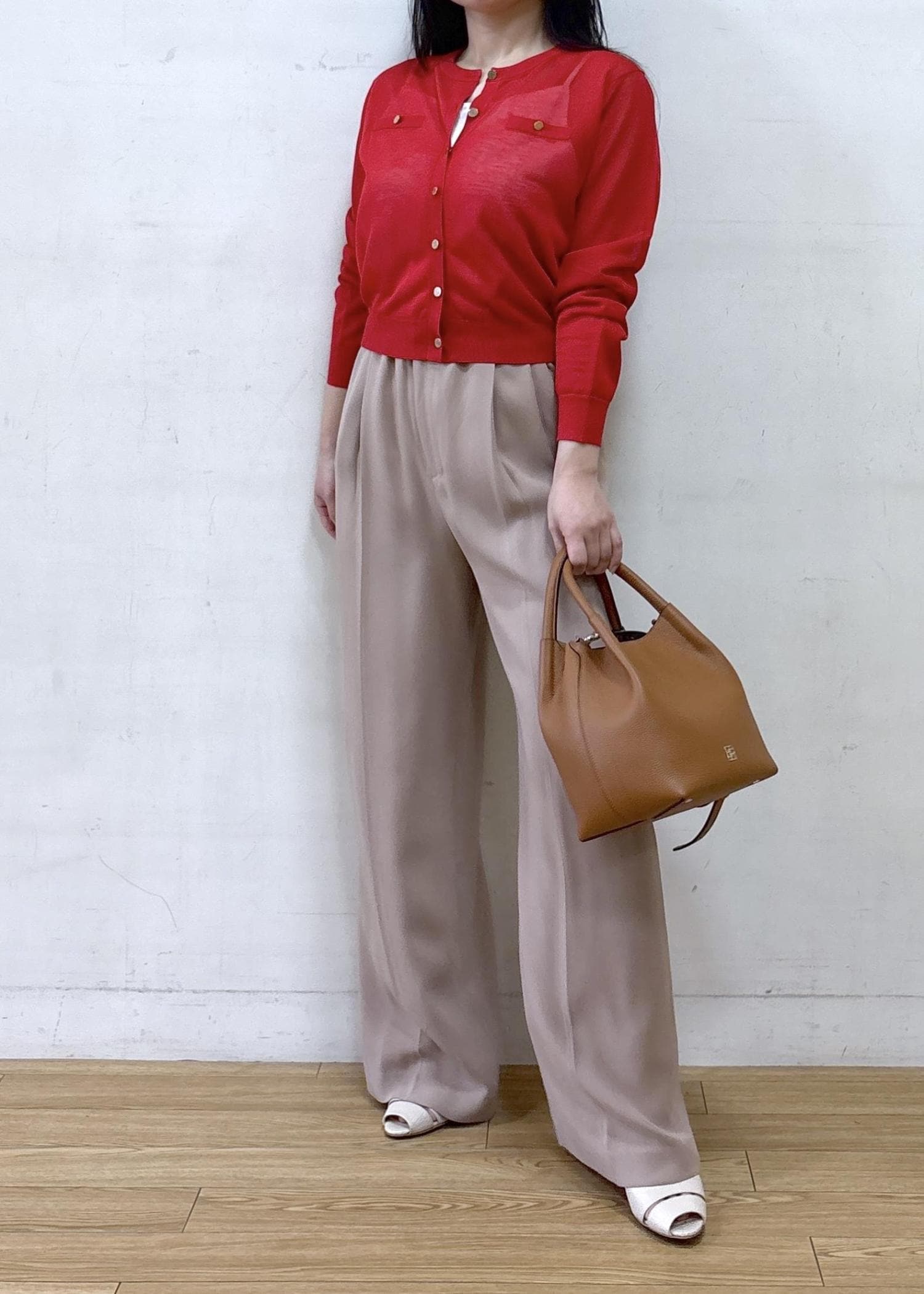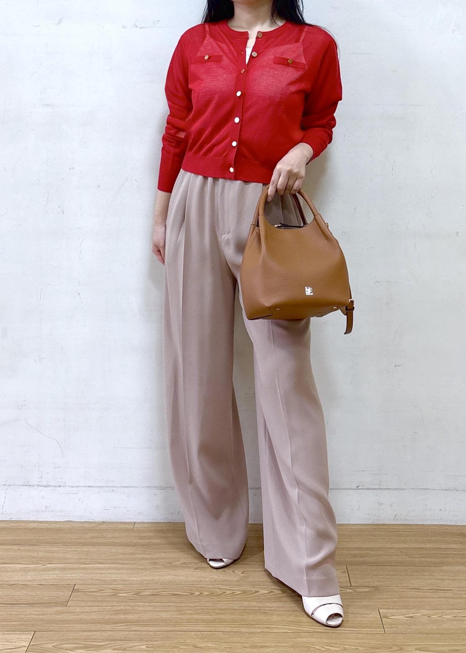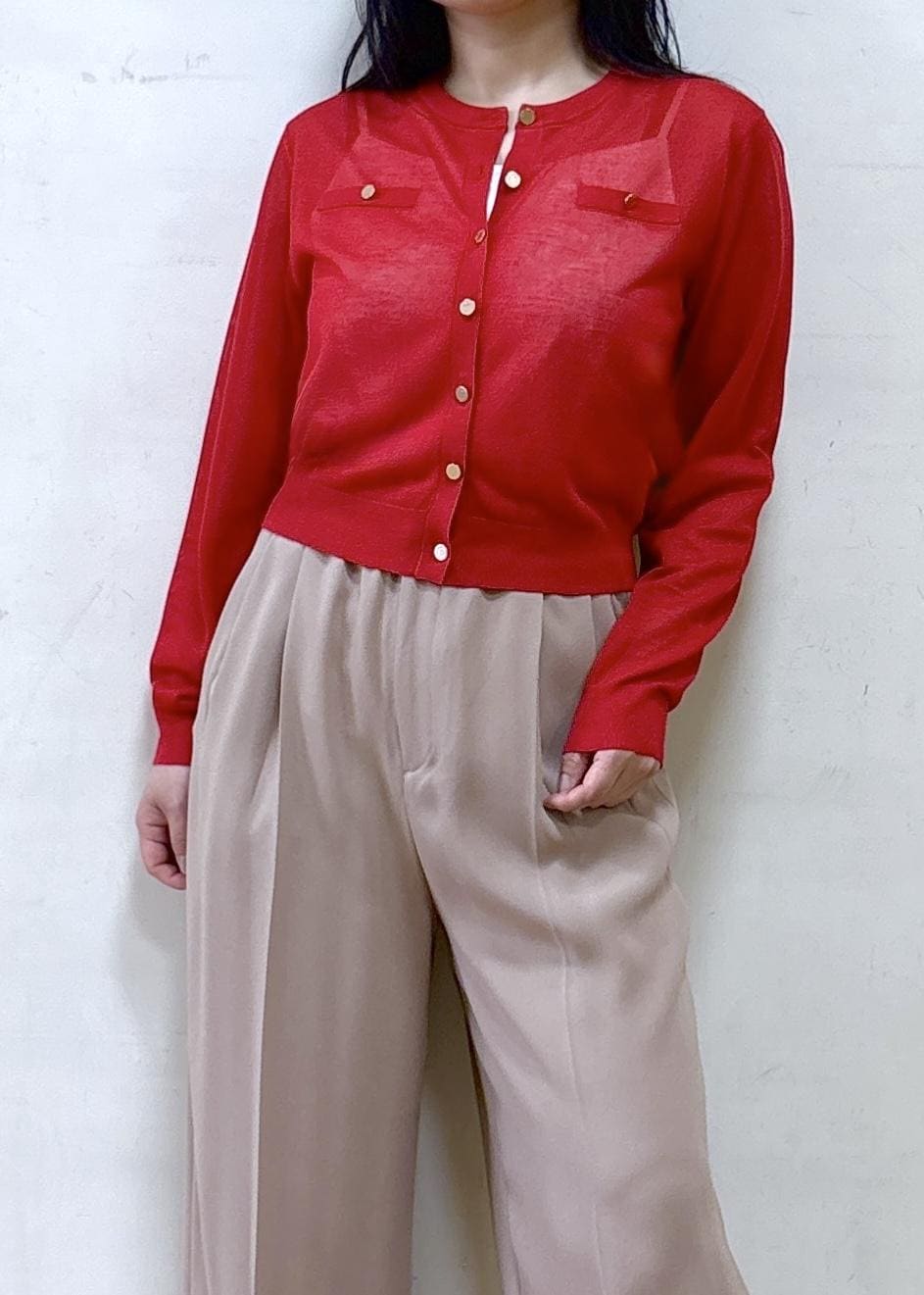 NEW!ROPÉLEVITA 金ボタンクルーネックシアーカーディガン/接触冷感・イージーケアレッド / F¥20,900レビュー身長152cm Fサイズ