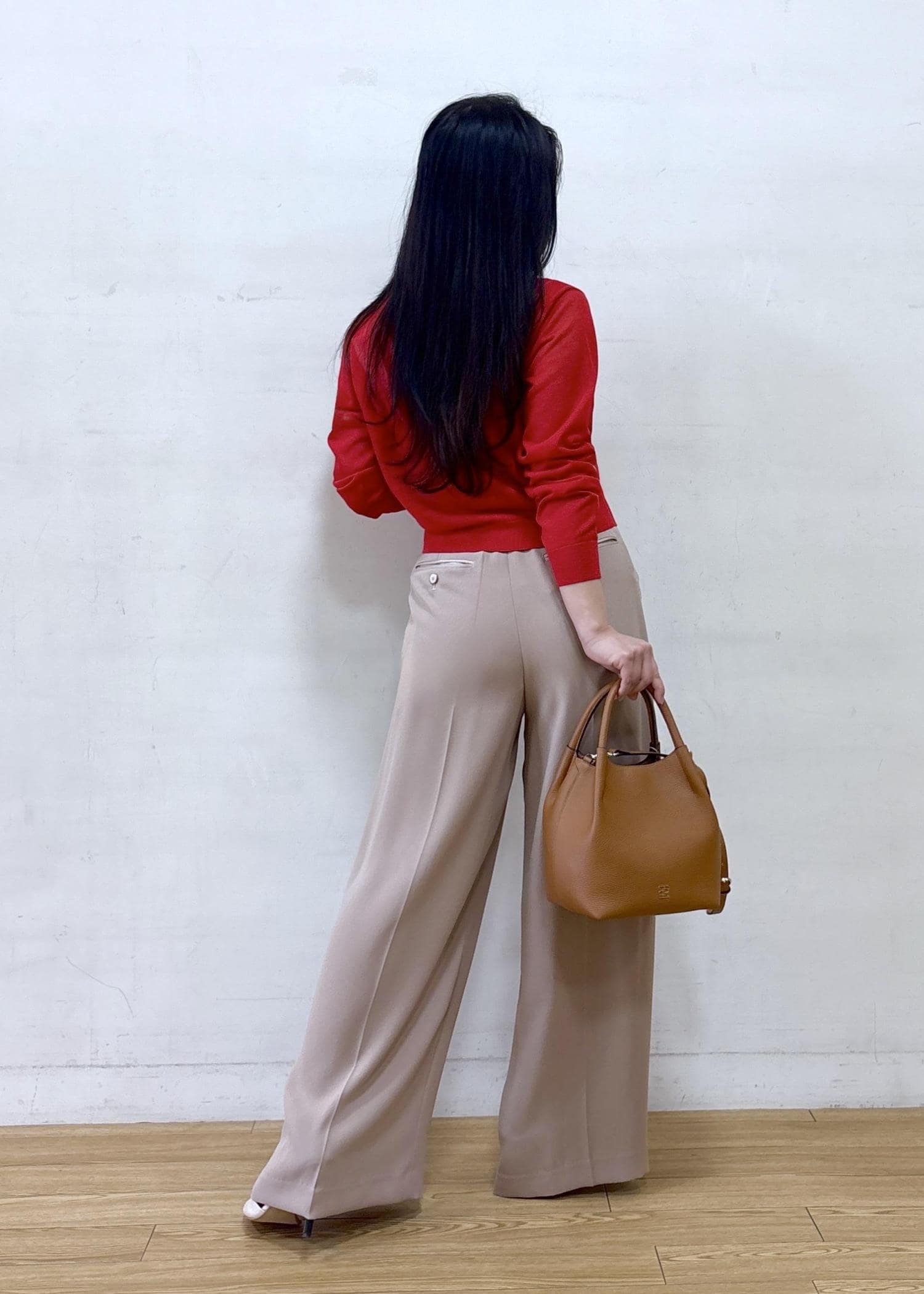 着丈は高めのヒールを履いて合わせております。