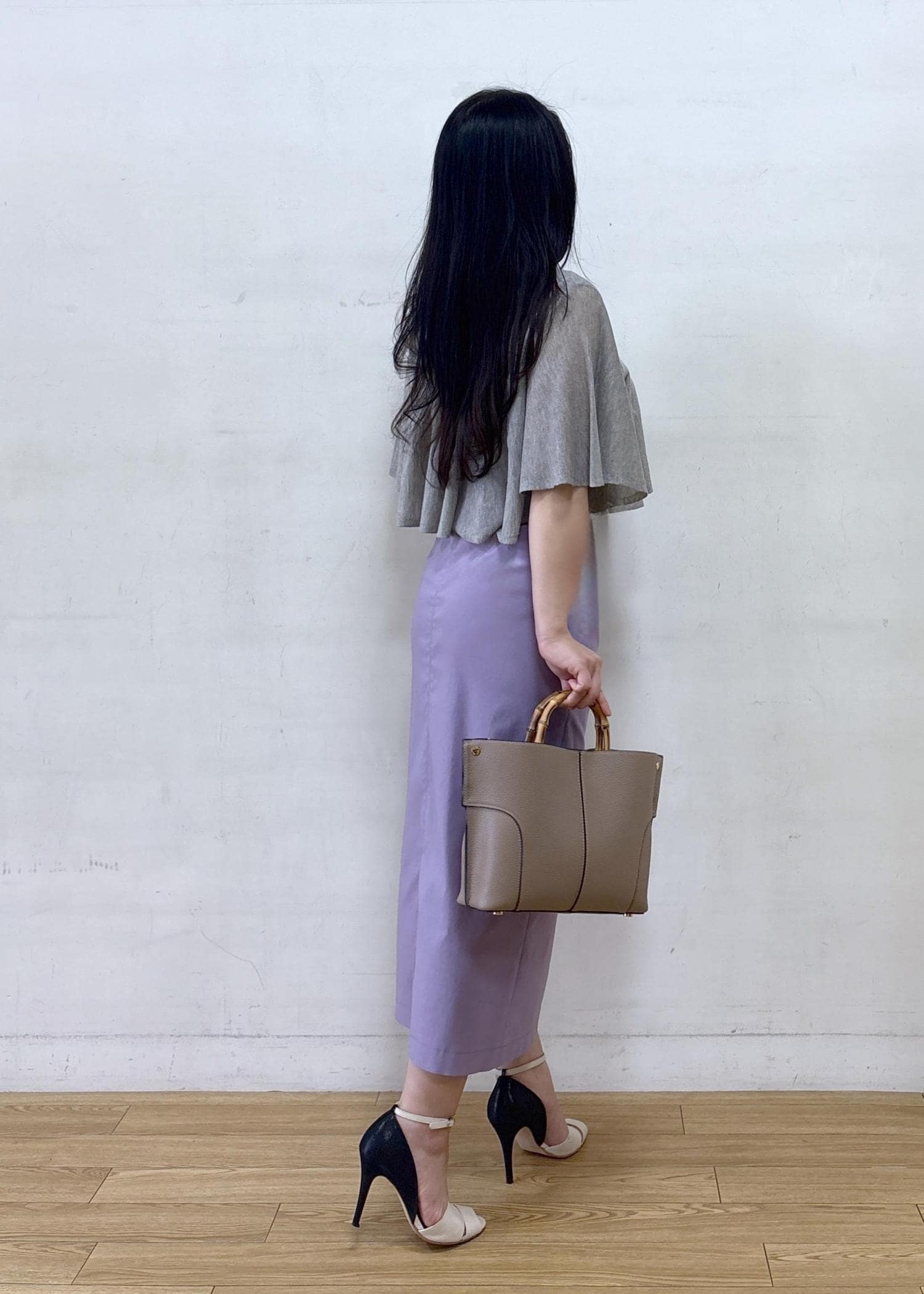 バンブーハンドルが上品で、お仕事からオフのカジュアルスタイルまで幅広く合わせることができます。