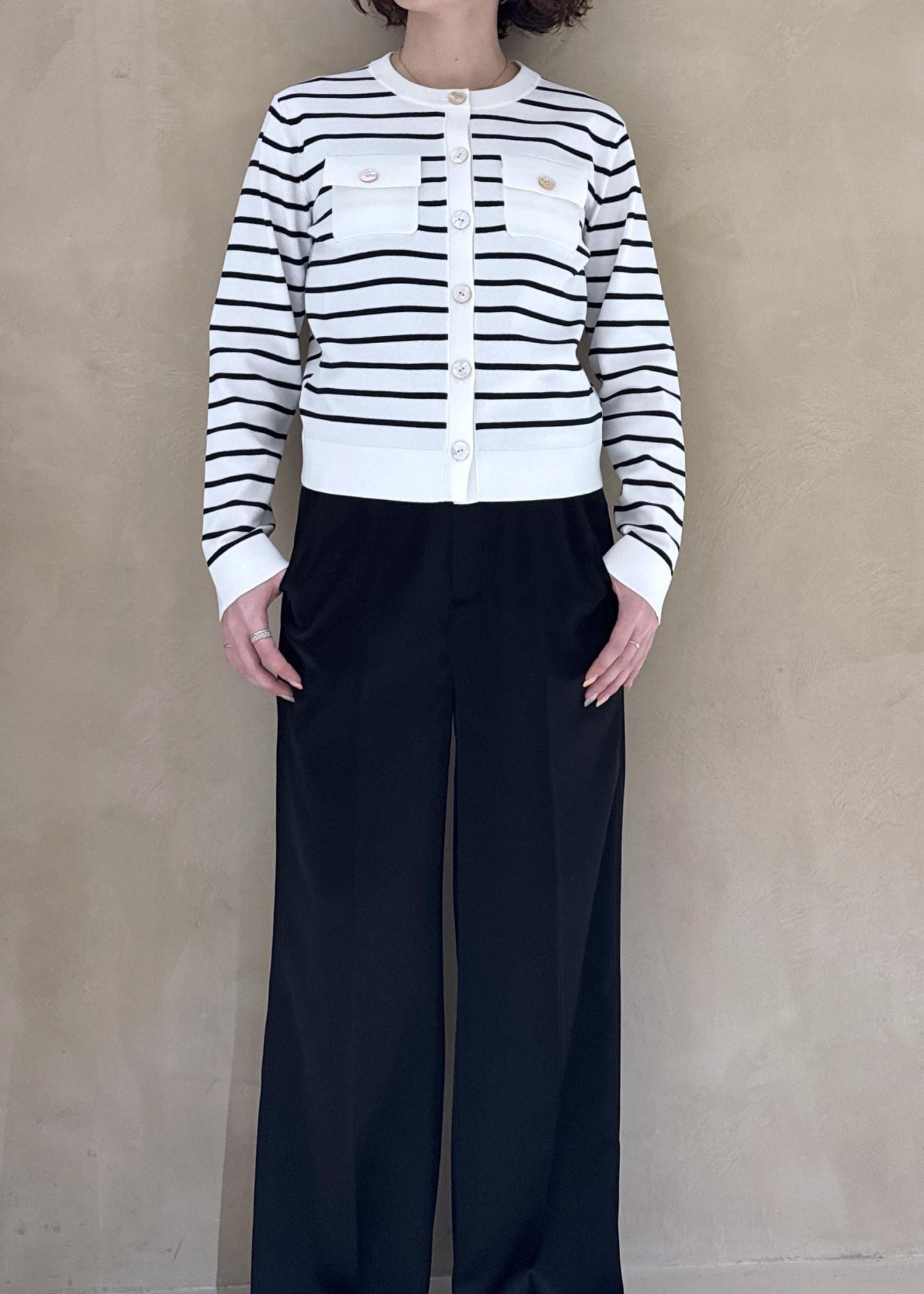 ROPÉポケットディテールコンパクトカーディガン/イージーケアホワイト系 / F¥19,800レビュー156cmでFサイズを着用しました。