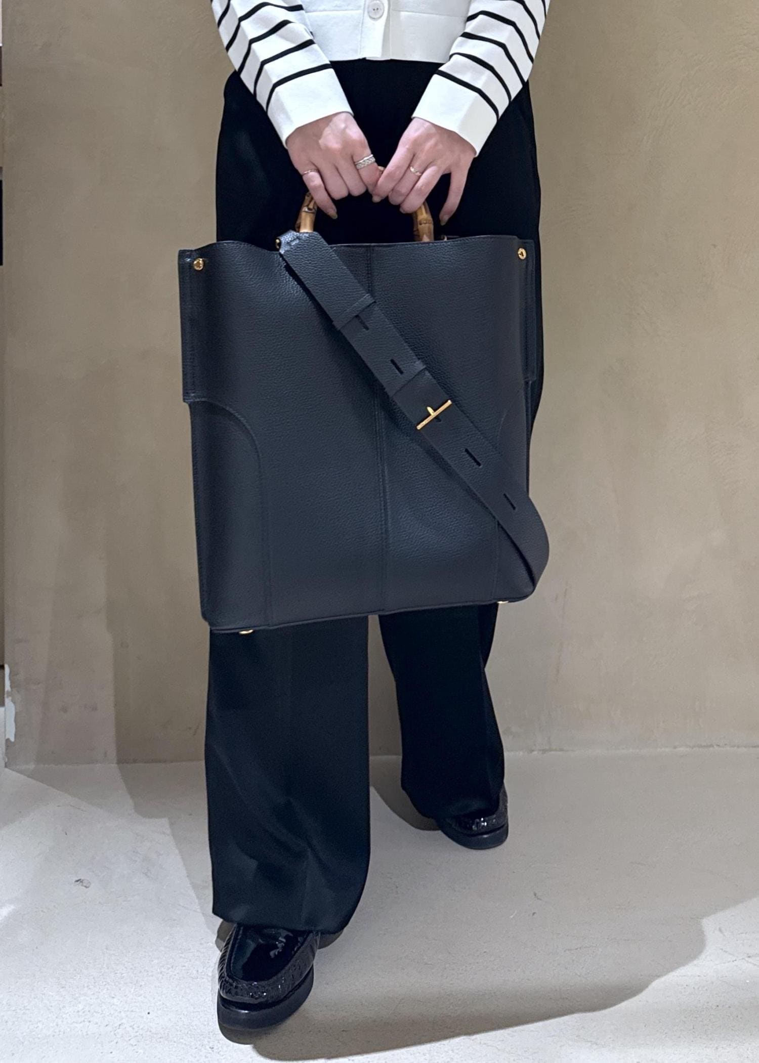 ROPÉ【E'POR】BAMBOO BAG Large/A4対応・通勤・26SS新色ブラック系 / F¥19,800レビューバンブーの持ち手がアクセントになってくれる