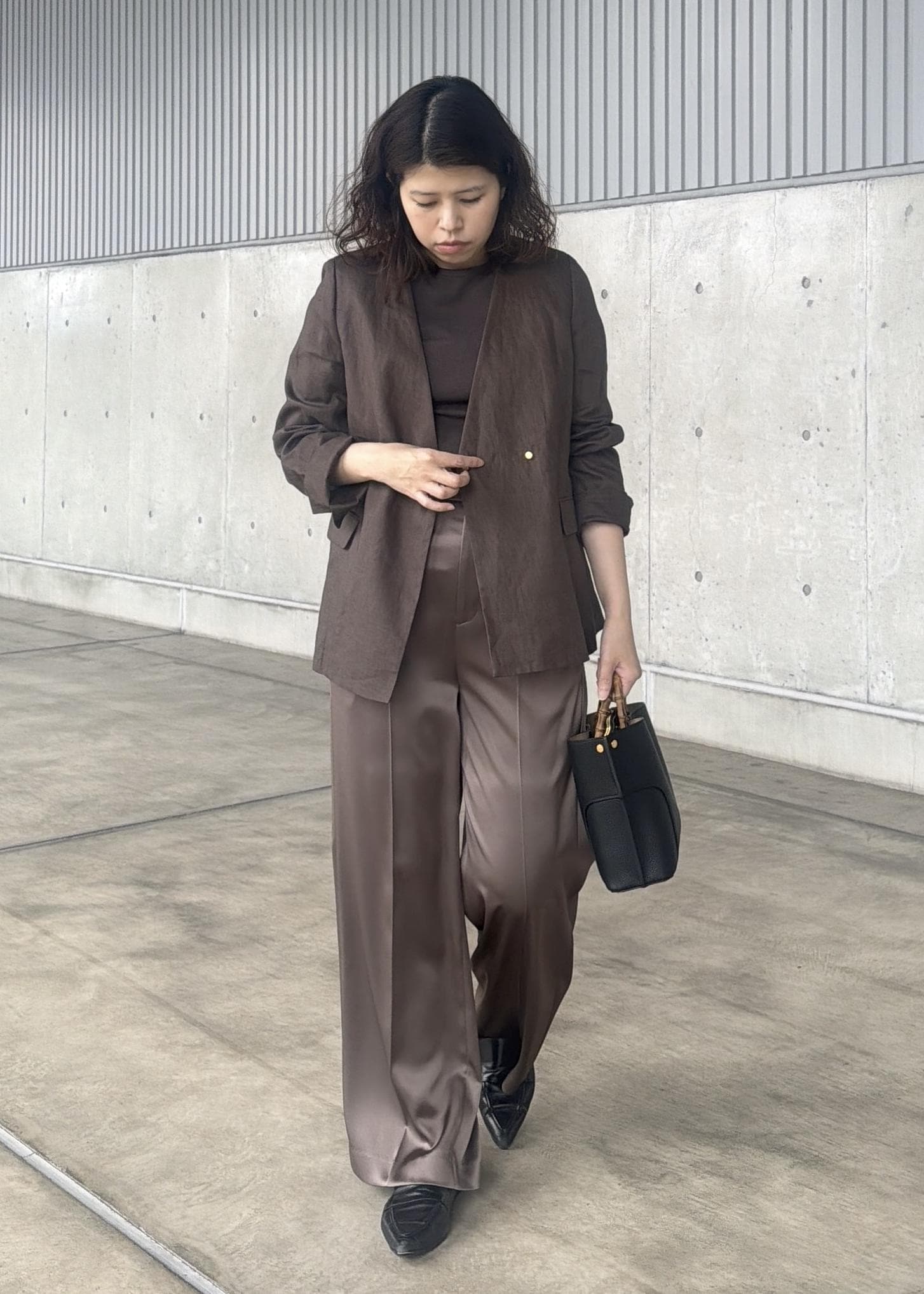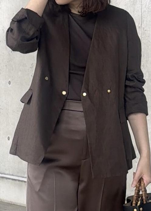 ROPÉリネンノーカラージャケット/セットアップ対応ダークブラウン系 / 38¥38,500レビュー身長161cmで普段38サイズを着用。