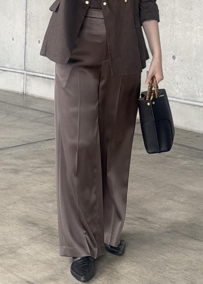 ROPÉドレープサテンイージーパンツ/セットアップ対応・イージーケアキャメル系 / 38¥25,300レビュー身長161㎝で普段38サイズを着用しています。