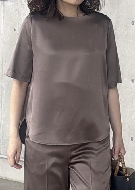 ROPÉドレープサテンティーブラウス/セットアップ対応・イージーケアキャメル系 / F¥20,900レビュー身長161㎝で普段38サイズを着用しています。