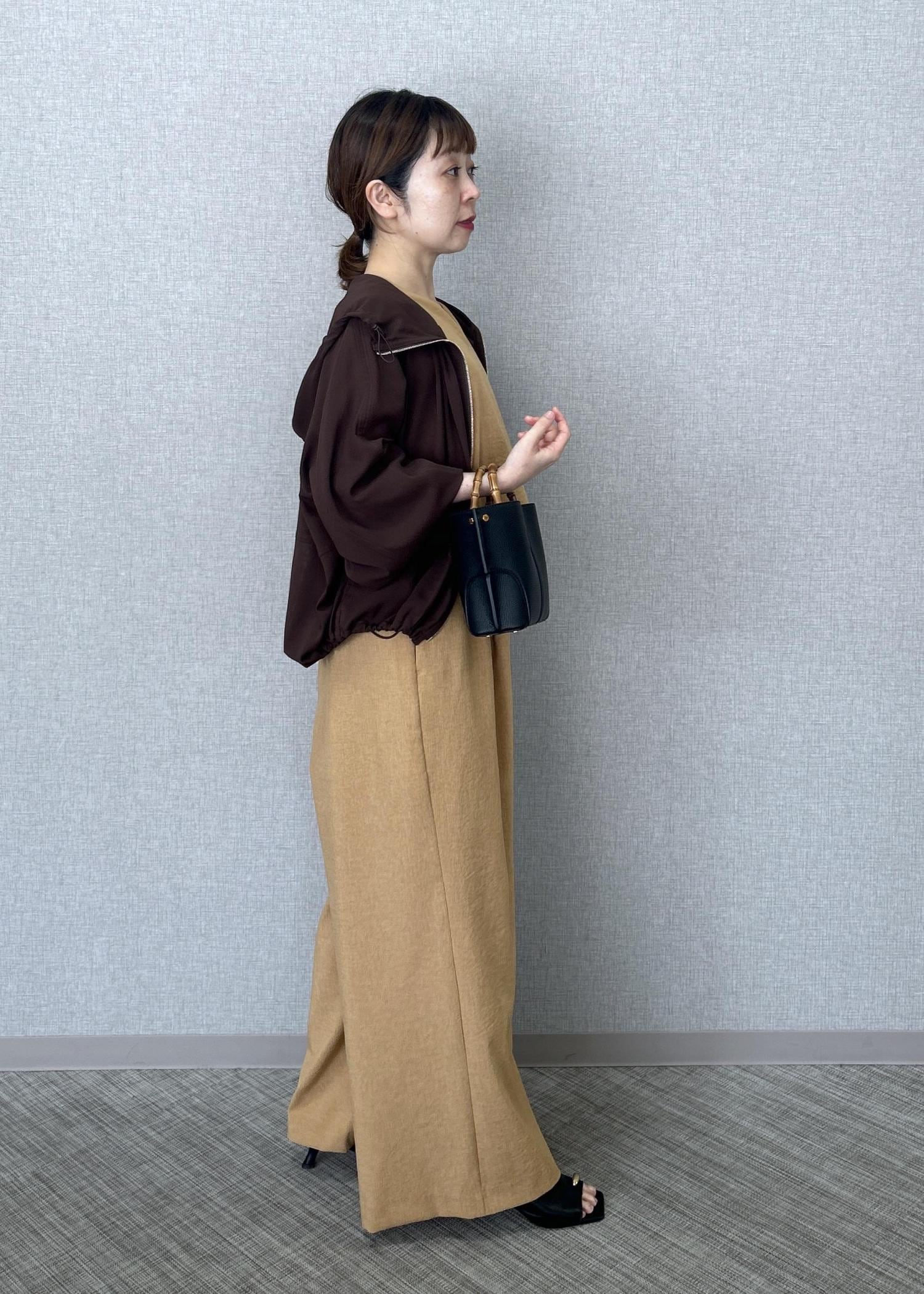 ROPÉバックオープンオールインワン/イージーケアベージュ / F¥27,500レビュー着丈はヒールのあるサンダルを合わせた場合でもギリギリ床に付いてしまう長さです。