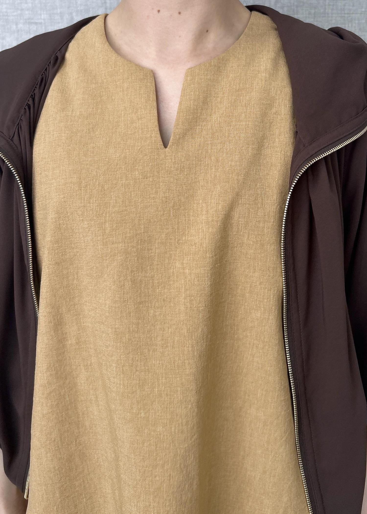 袖周りが大きめに空いているデザインなので中にインナーを1枚着用することをおすすめします。