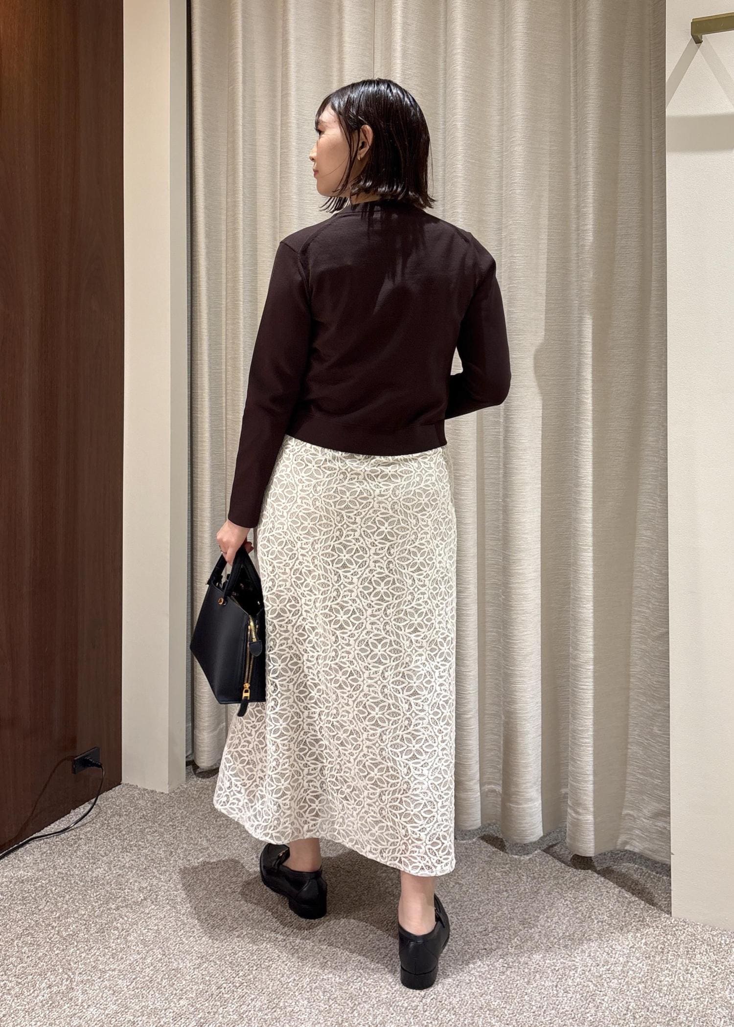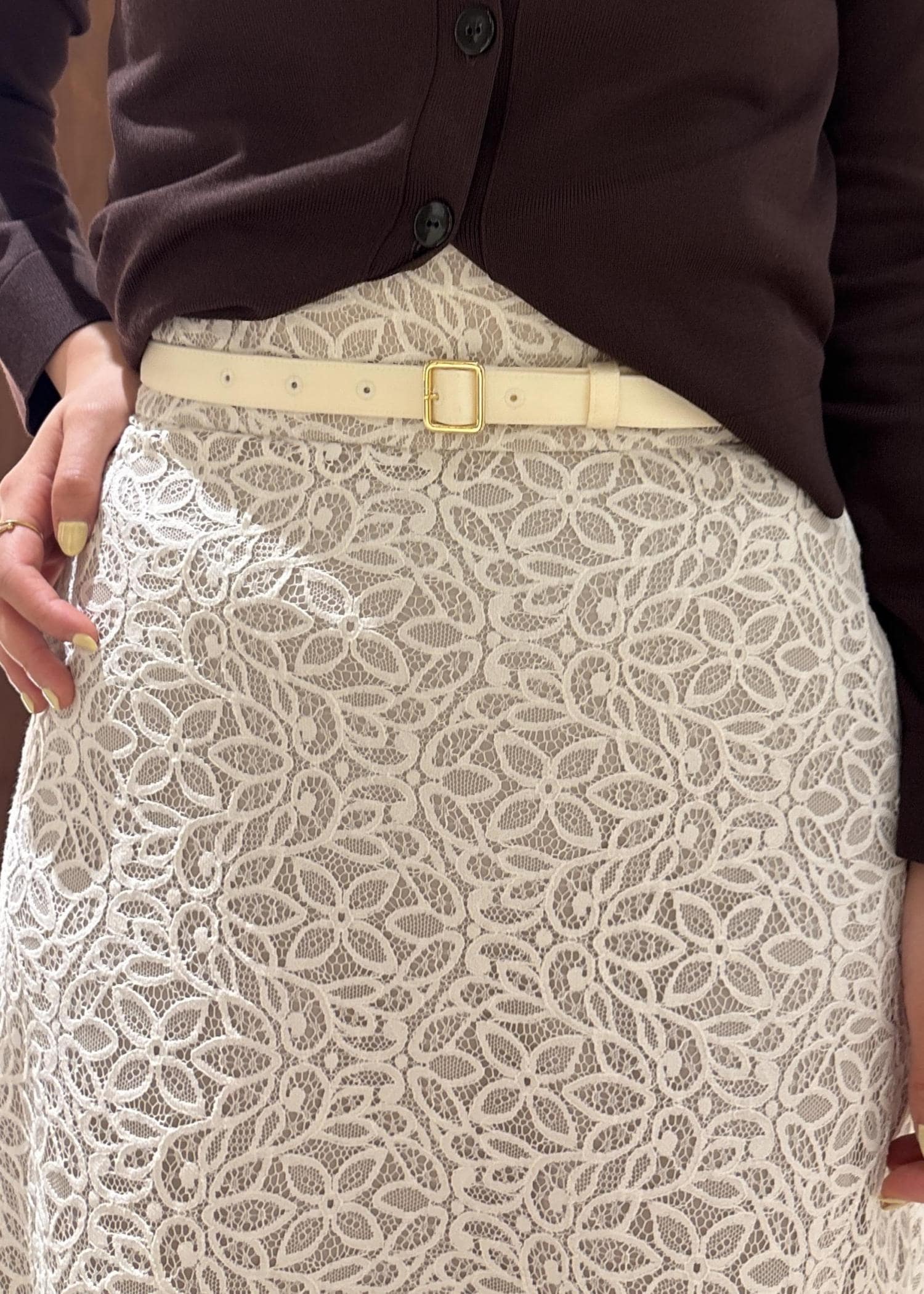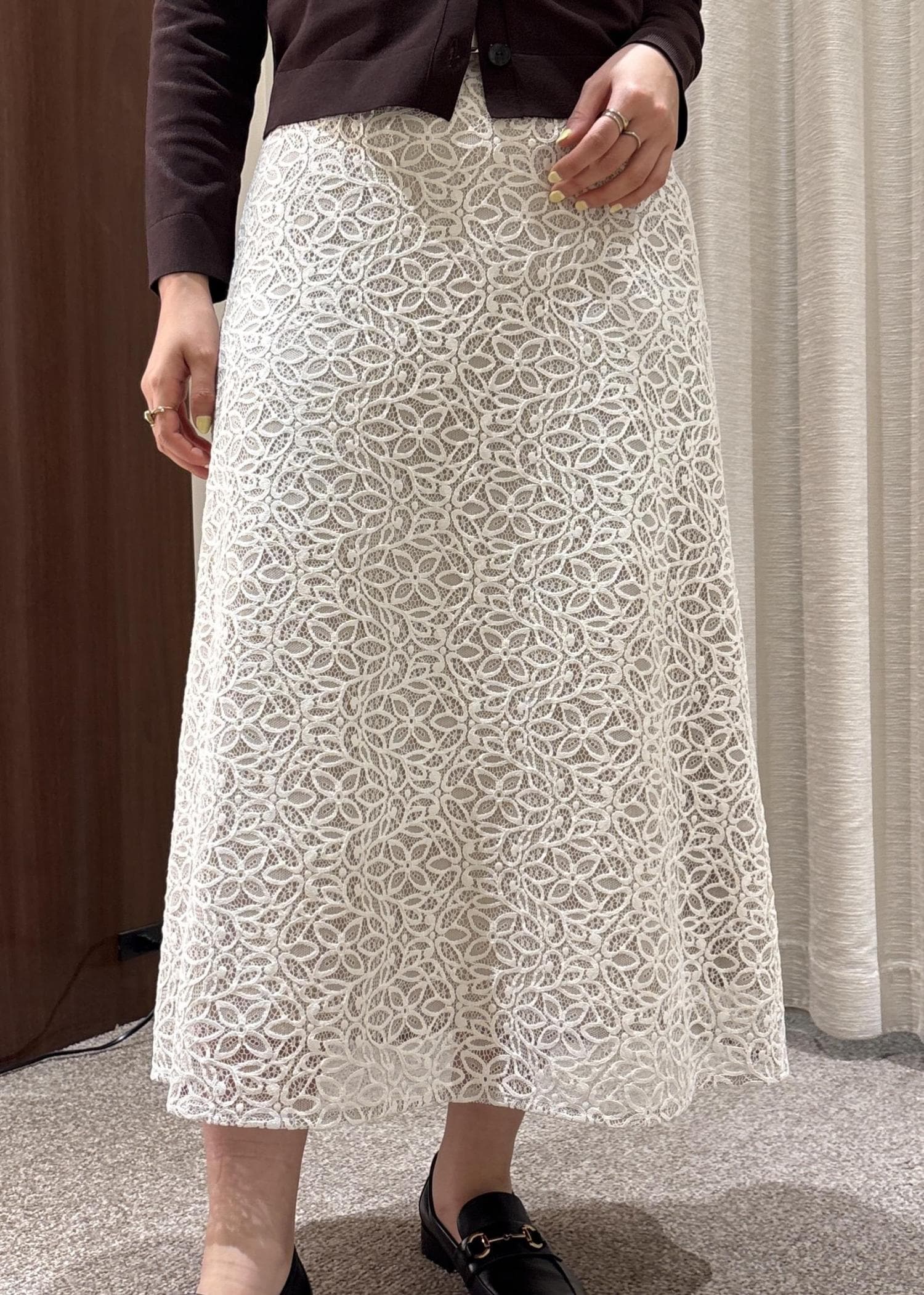ROPÉベルト付きセミフレアレーススカート/イージーケアオフホワイト / 38¥30,800レビュー162cmで38サイズを着用しております。