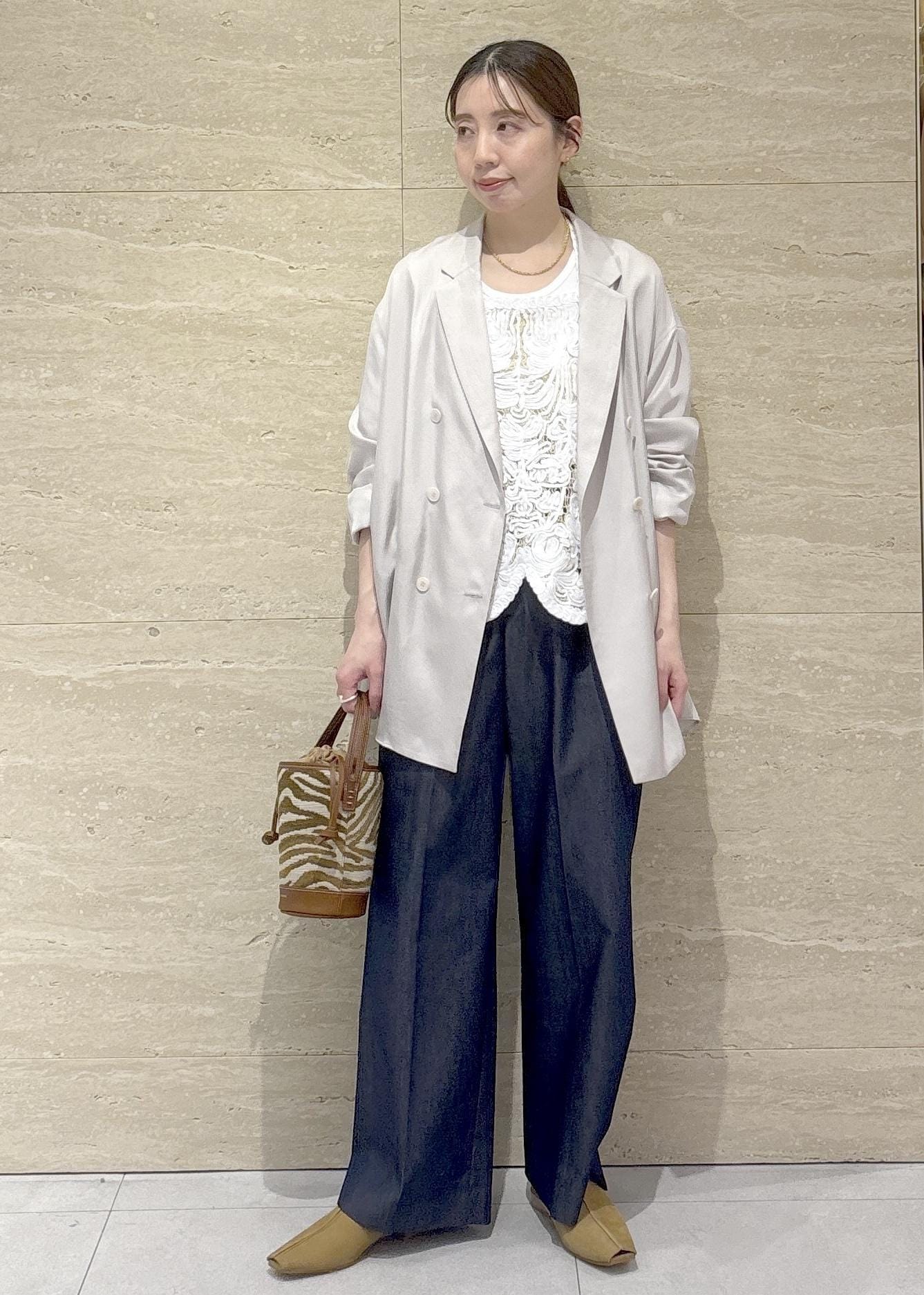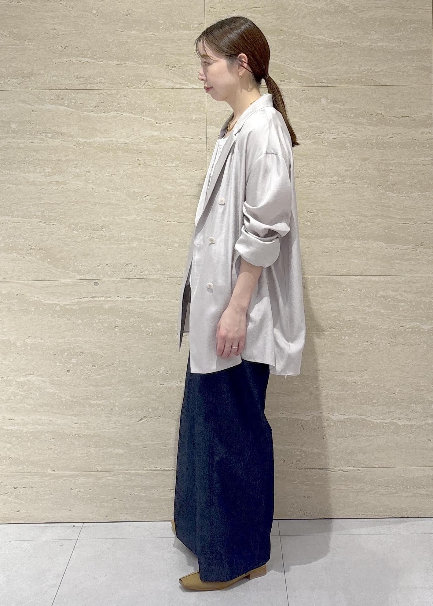 SALON adam et ropéアセテートツイルダブルジャケット / セットアップ対応ベージュ系 / F¥35,200レビュー大きめのシルエットで、お尻の下までの着丈でした。