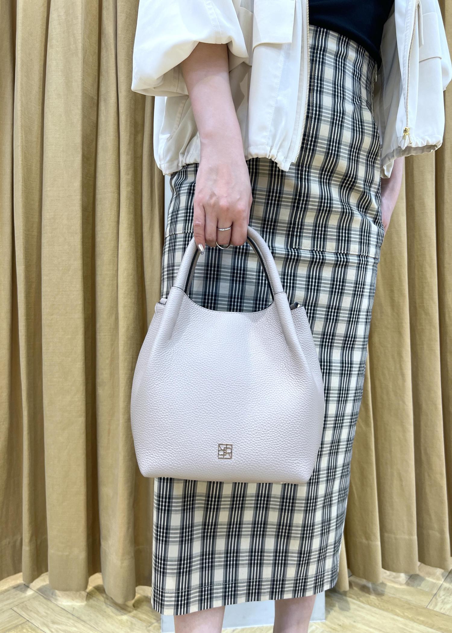 ROPÉ2WAYキューブボックスレザーハンドバッグチャコール / F¥33,000レビューマチがあるので荷物がしっかり入ります。