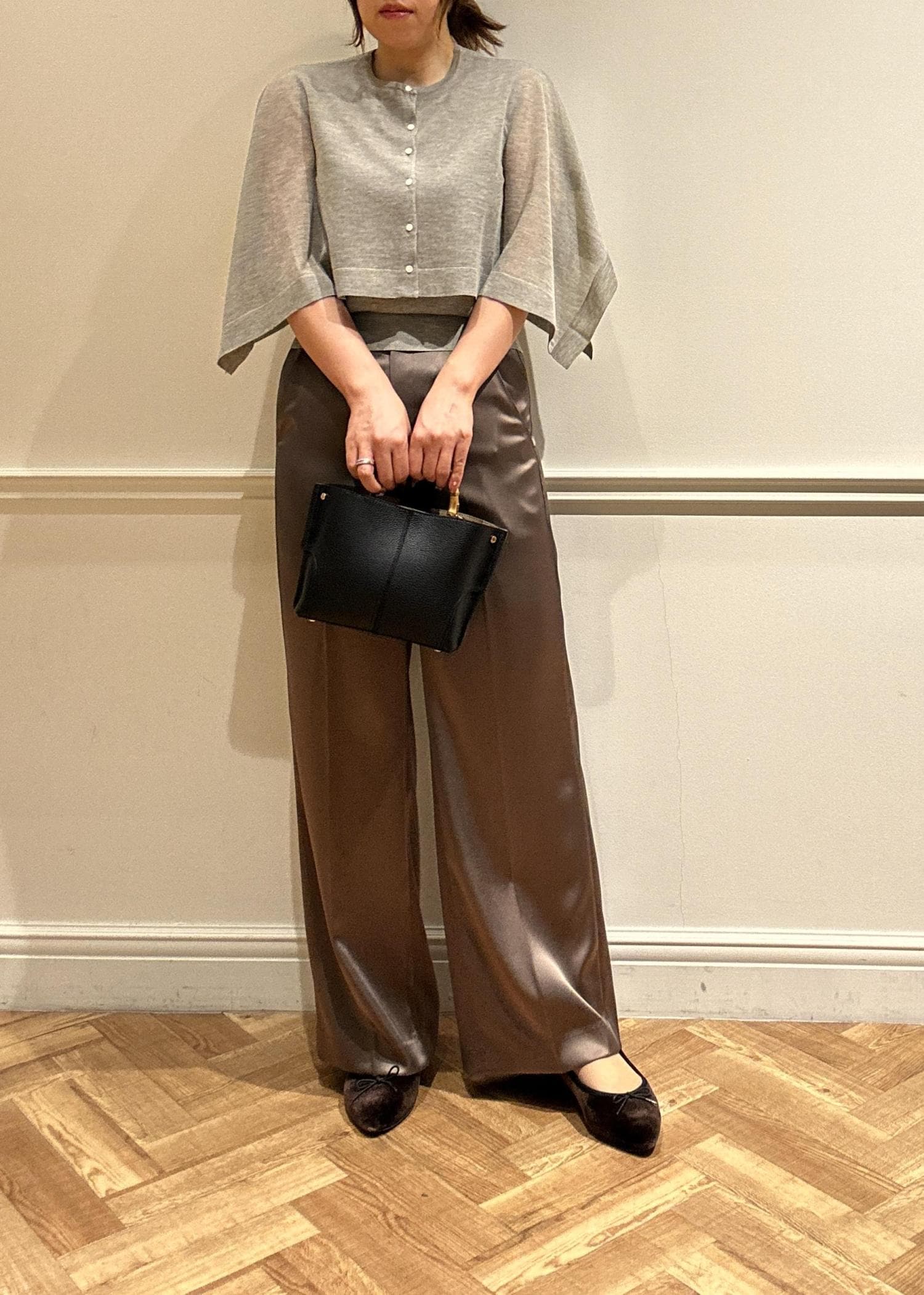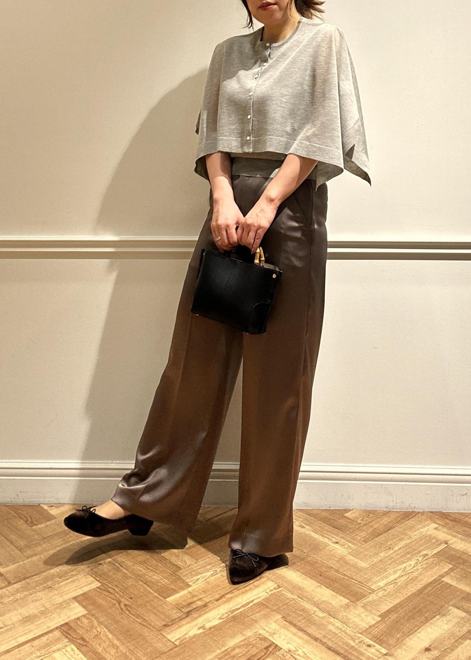 ベージュのトップスにサテンパンツで合わせてみました♪