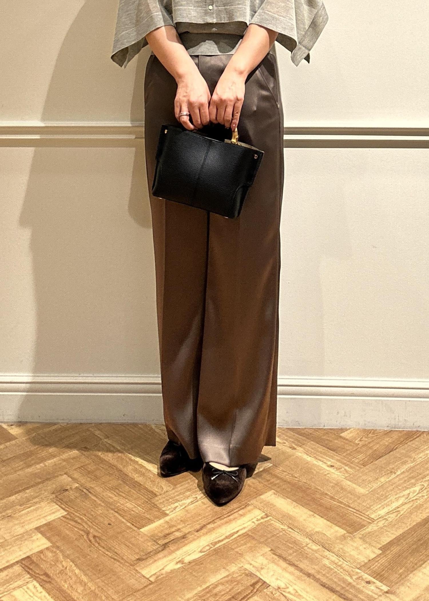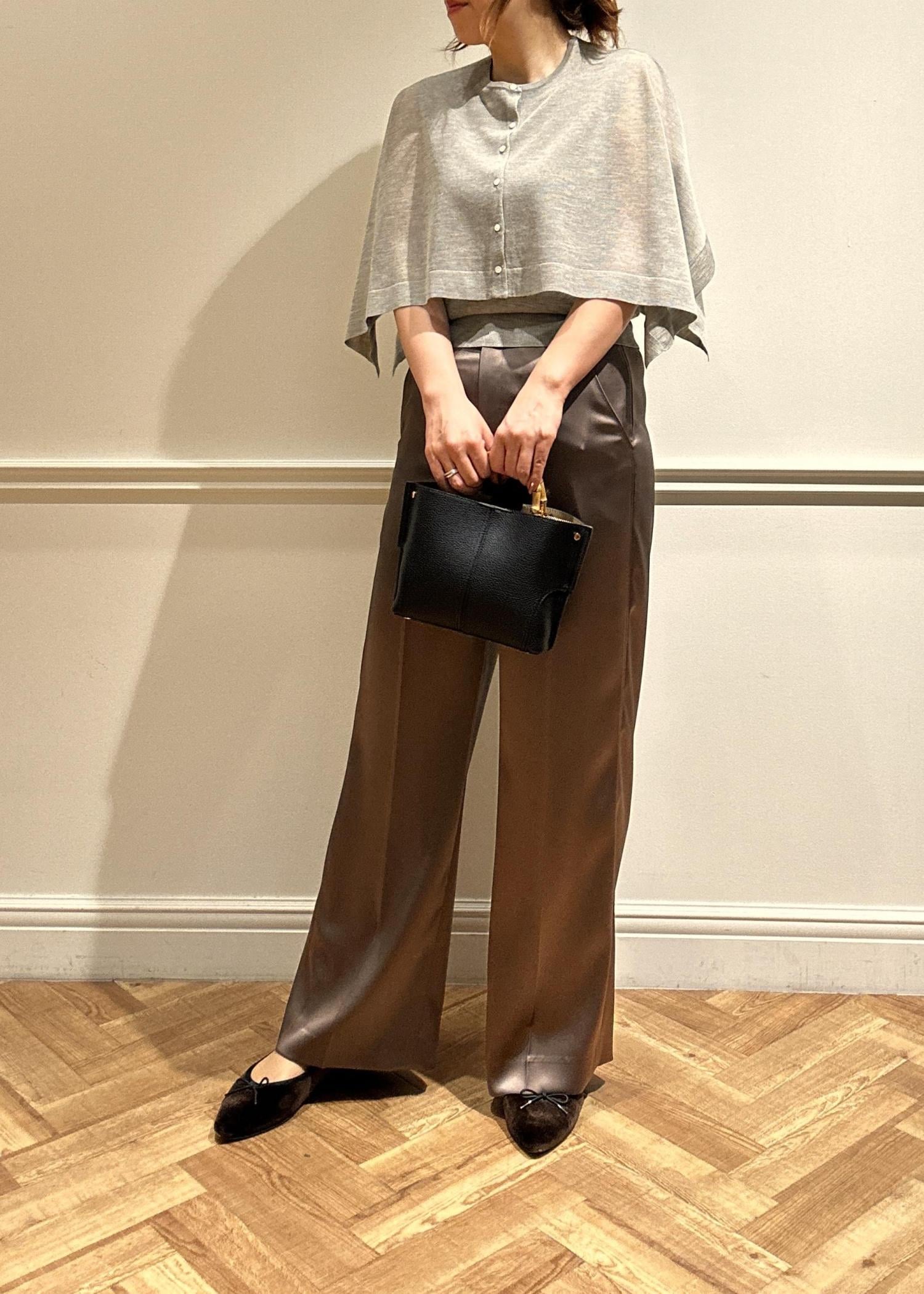 ROPÉドレープサテンイージーパンツ/セットアップ対応・イージーケアキャメル系 / 38¥25,300レビューウエストゴムで楽ちんです。サラッとした着心地で快適です。同素材のトップスもあるのでセットアップでも◎