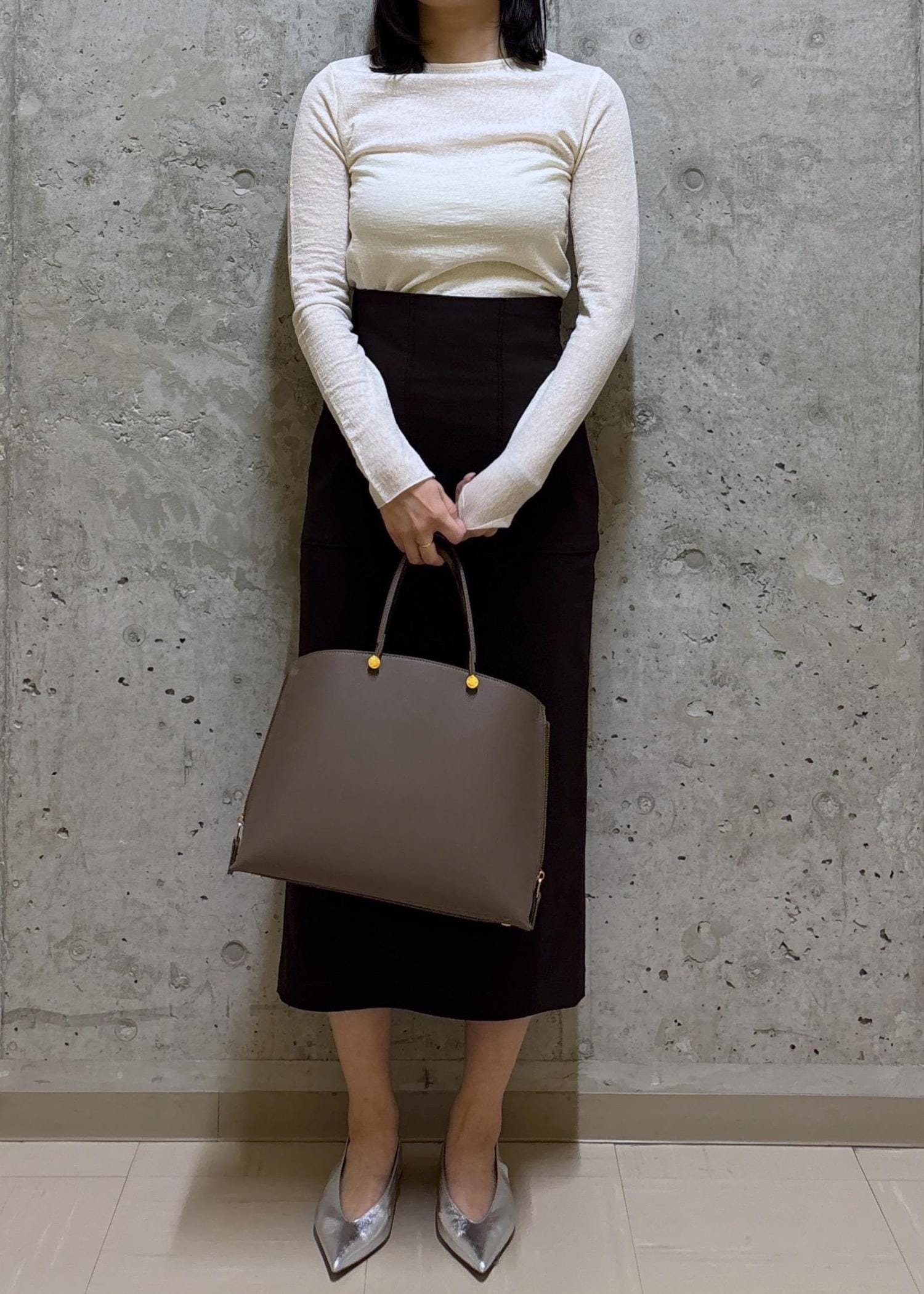 シンプルなカットソーとタイトスカートの組み合わせも、