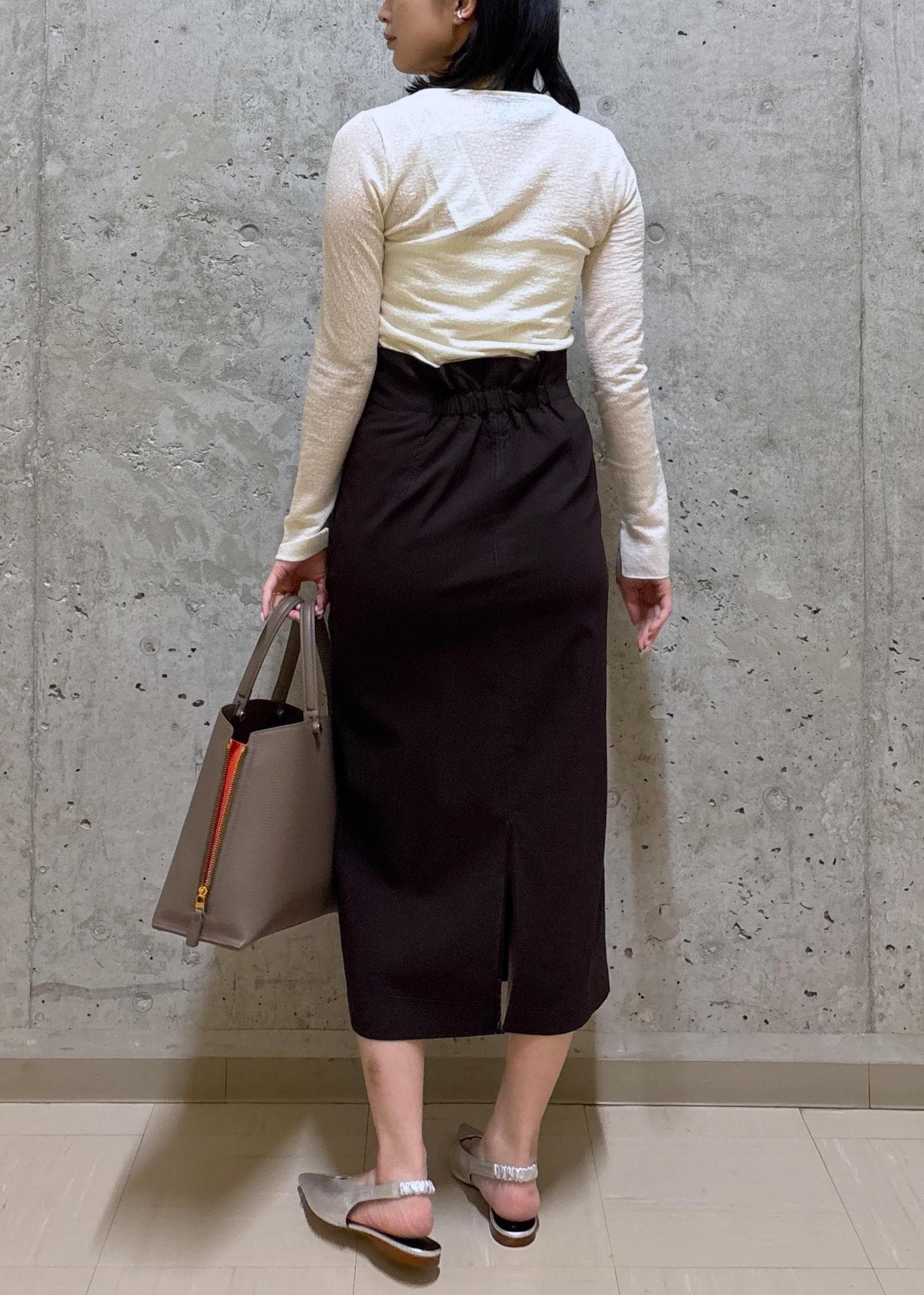 ROPÉ[美人スカート]ハイストレッチポケット付きタイトスカート/26SS・イージーケアダークブラウン / 38¥19,800レビュー身長164㎝、ボトムが普段38サイズを着用。
