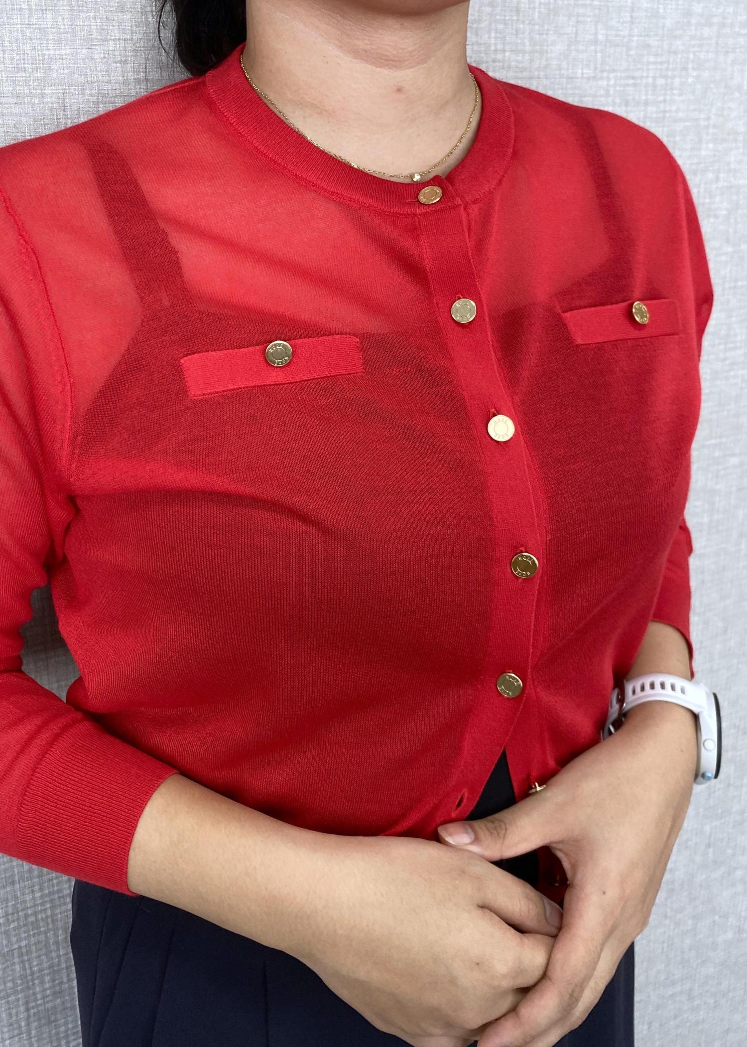 NEW!ROPÉLEVITA 金ボタンクルーネックシアーカーディガン/接触冷感・イージーケアレッド / F¥20,900レビューLEVITAの軽やかなカーディガンです。