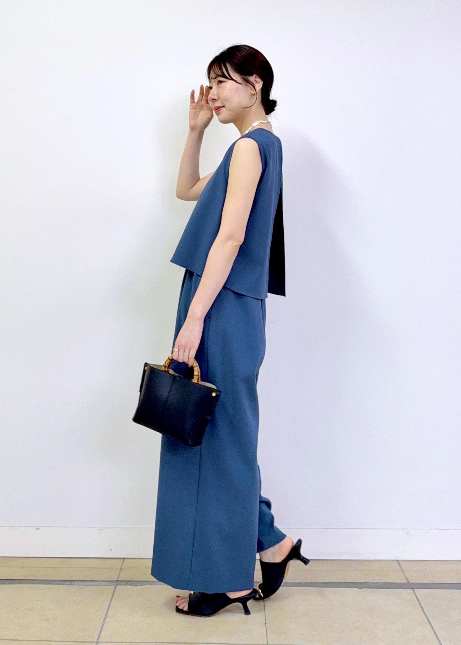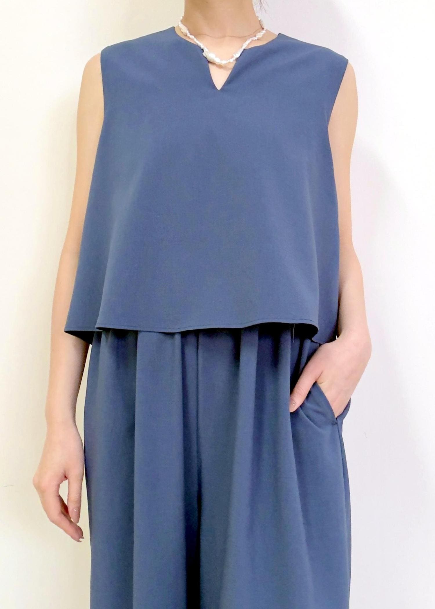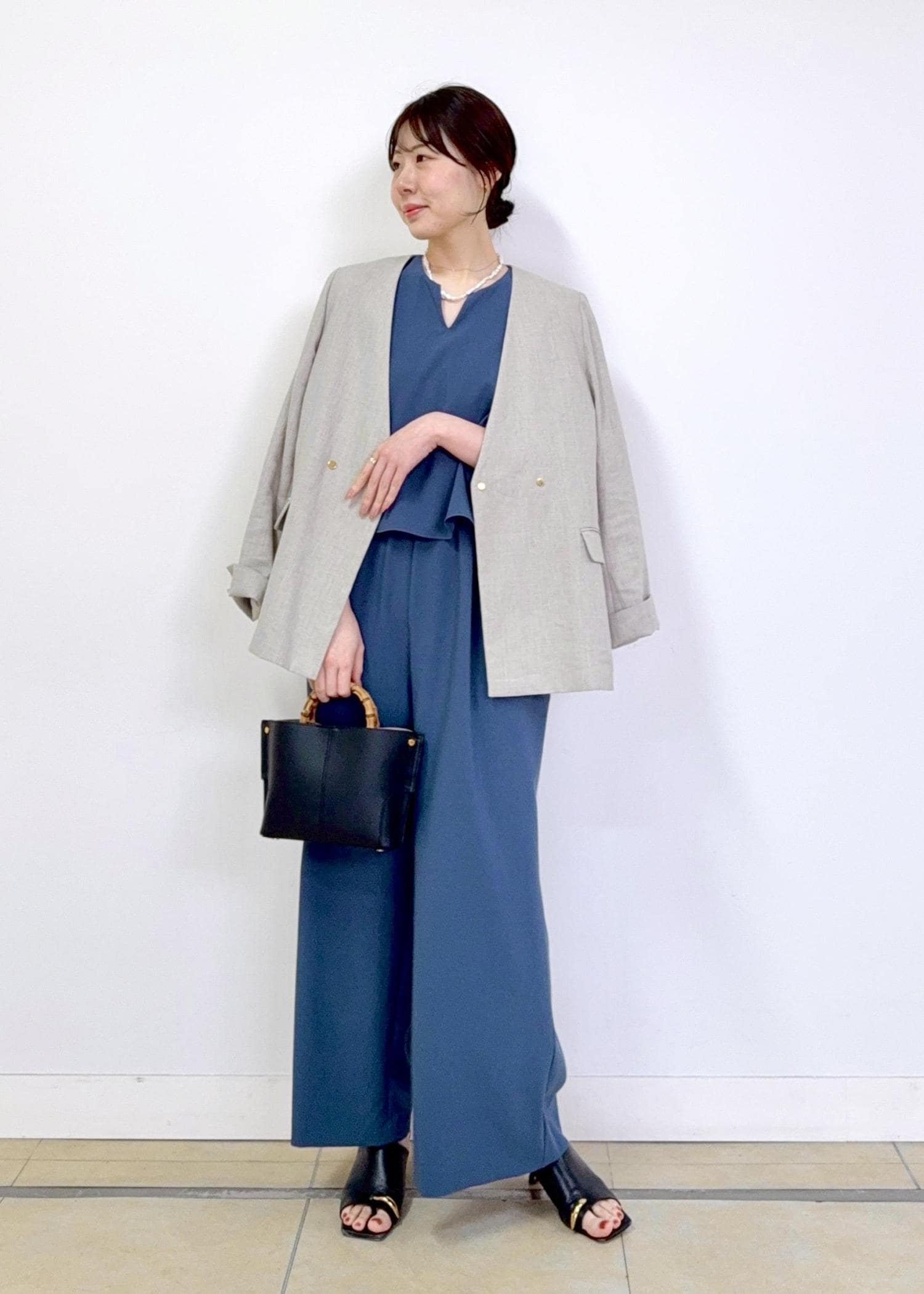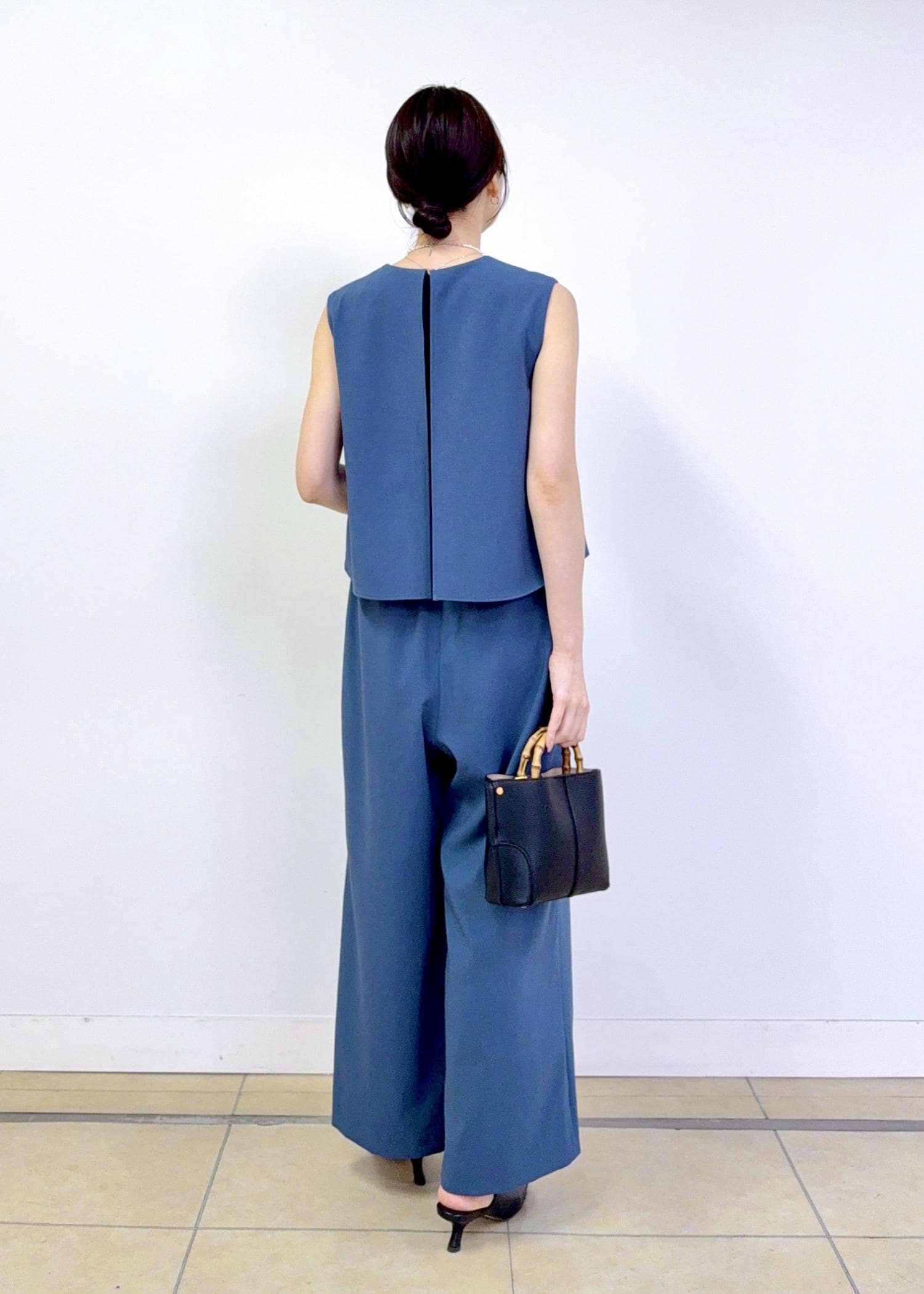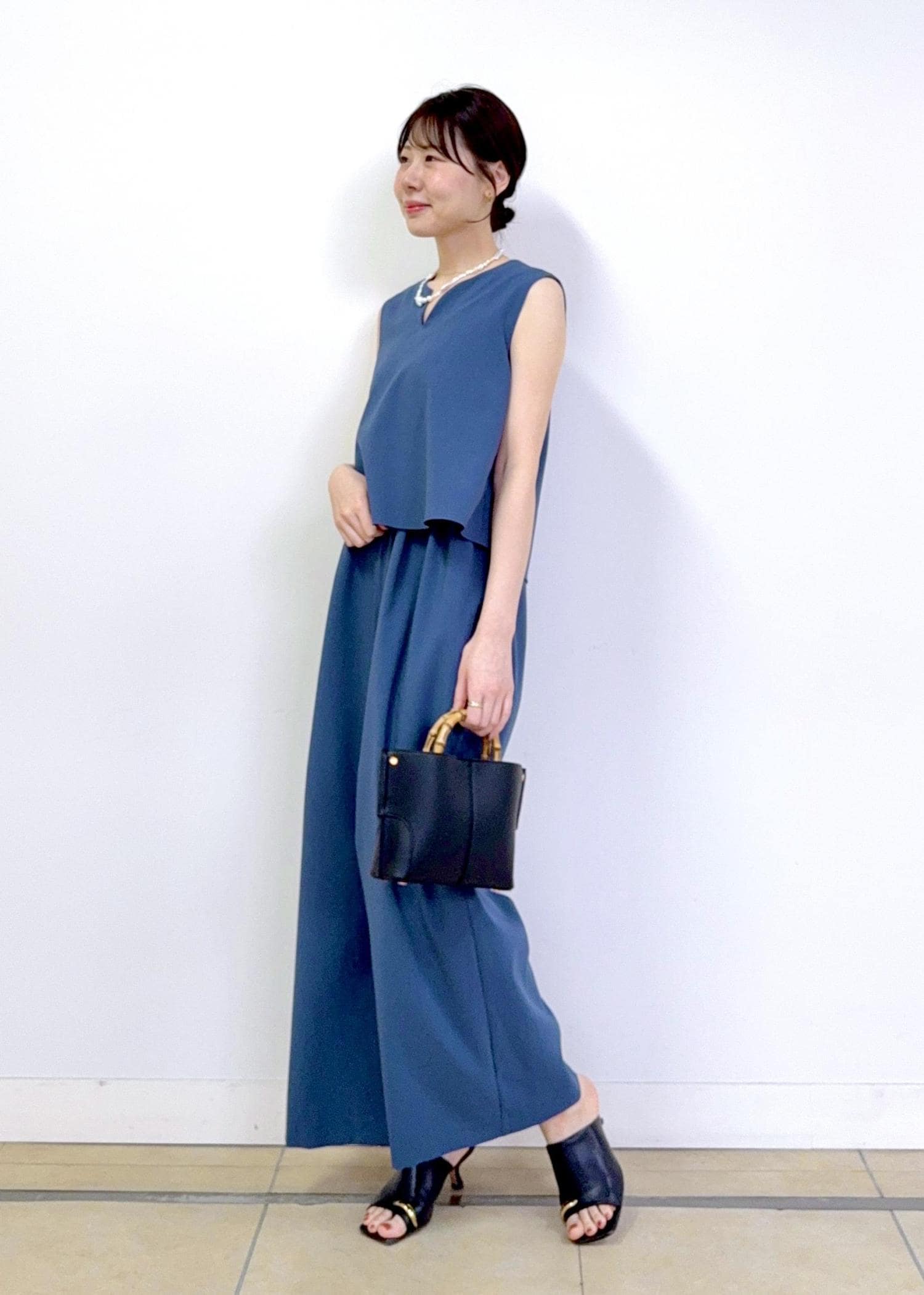 ROPÉバックオープンオールインワン/イージーケアブルー / F¥27,500レビュー身長165cmでFサイズを着用しています。