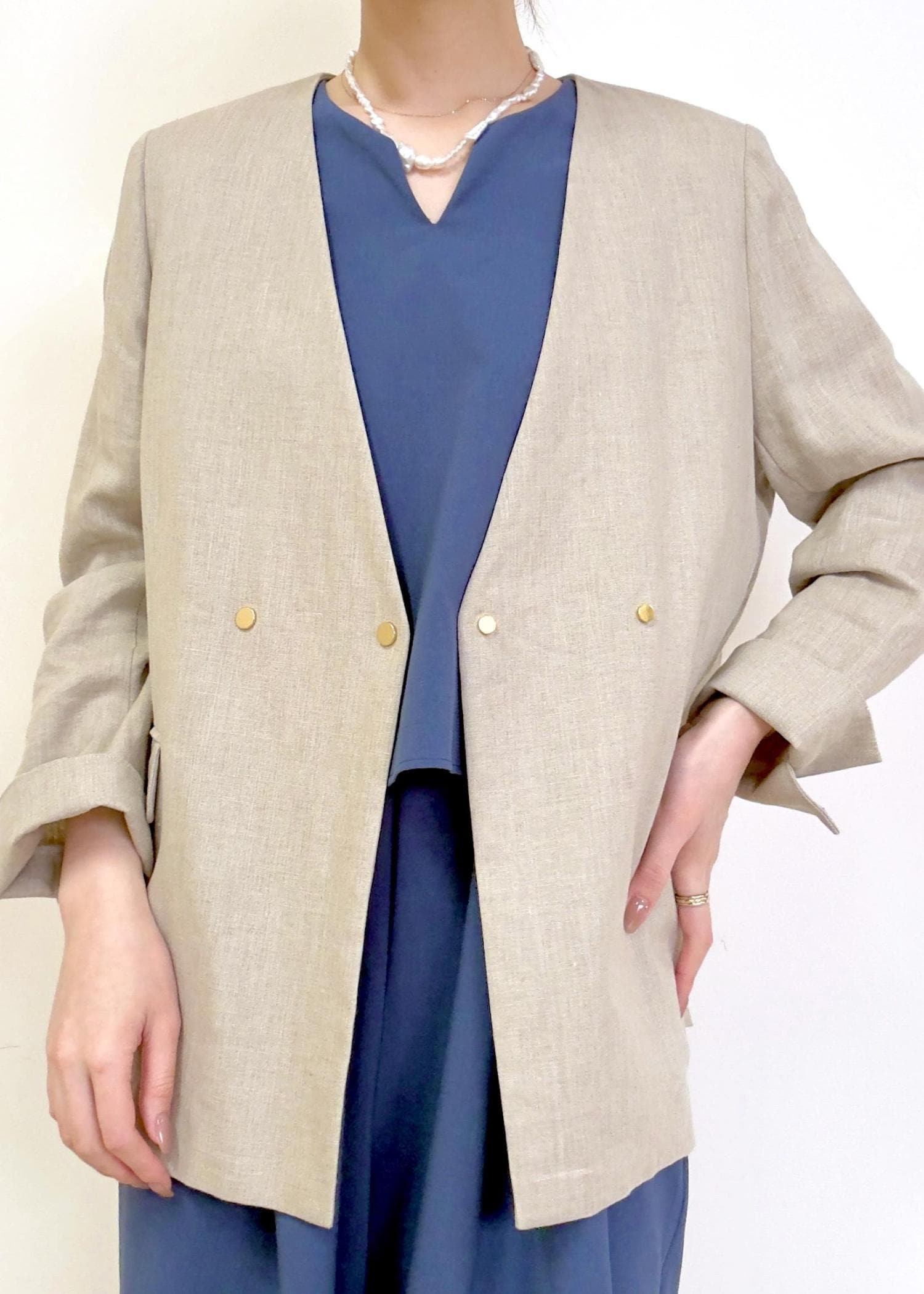 ROPÉリネンノーカラージャケット/セットアップ対応ベージュ / 38¥38,500レビュー身長165cmで38サイズを着用しています。