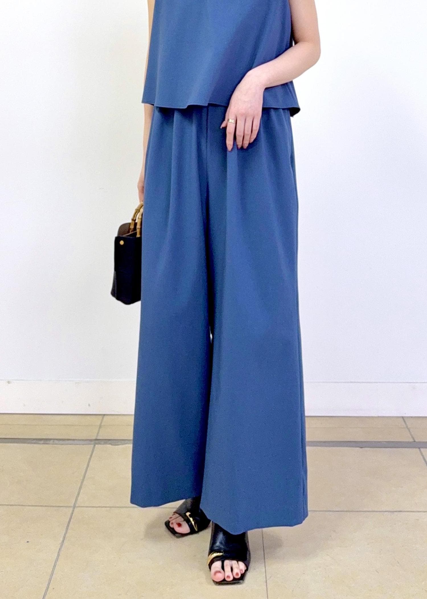 短めなトップス部分のデザインは、脚をスッキリ長く見せ、スタイルアップ効果が抜群です。