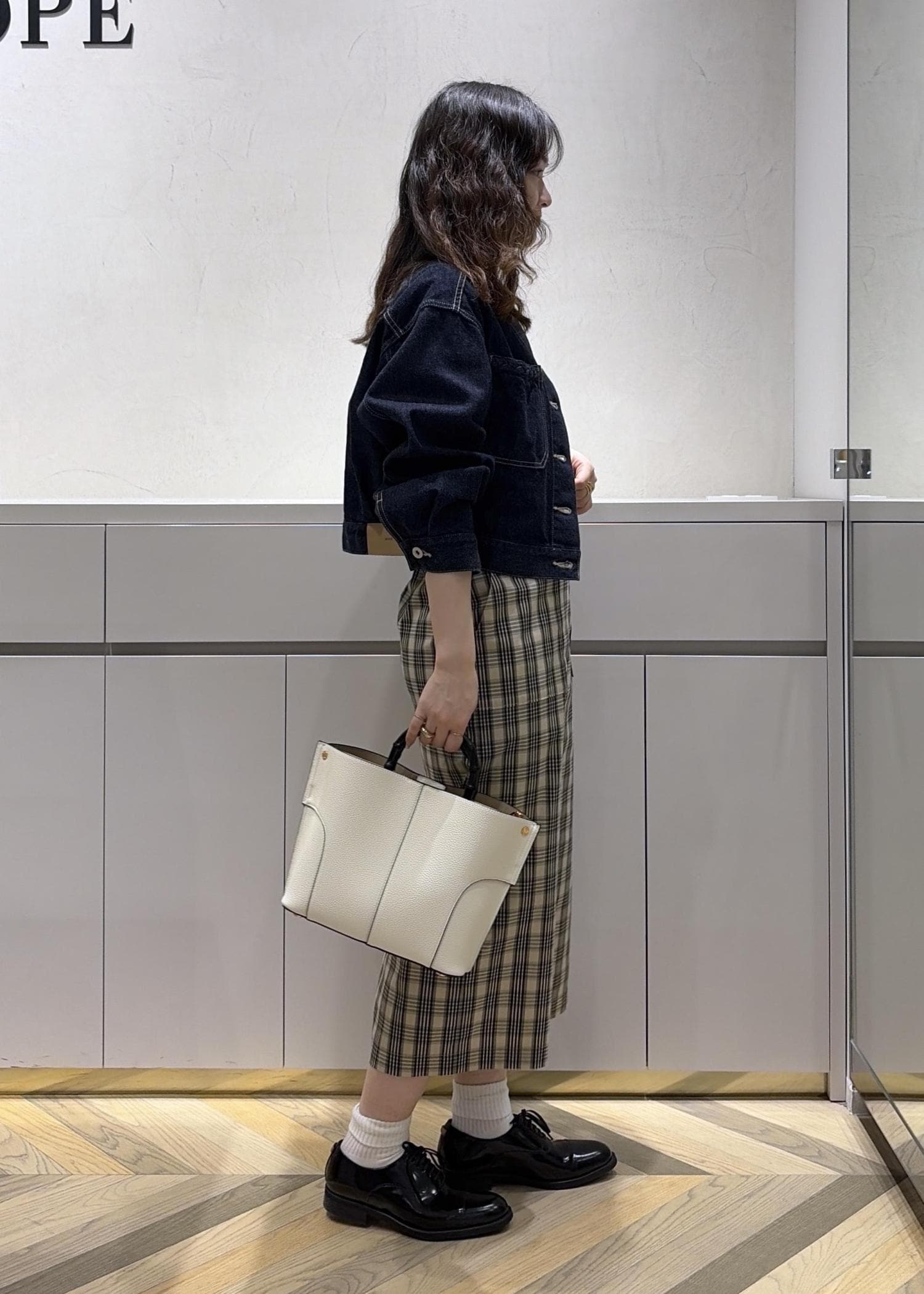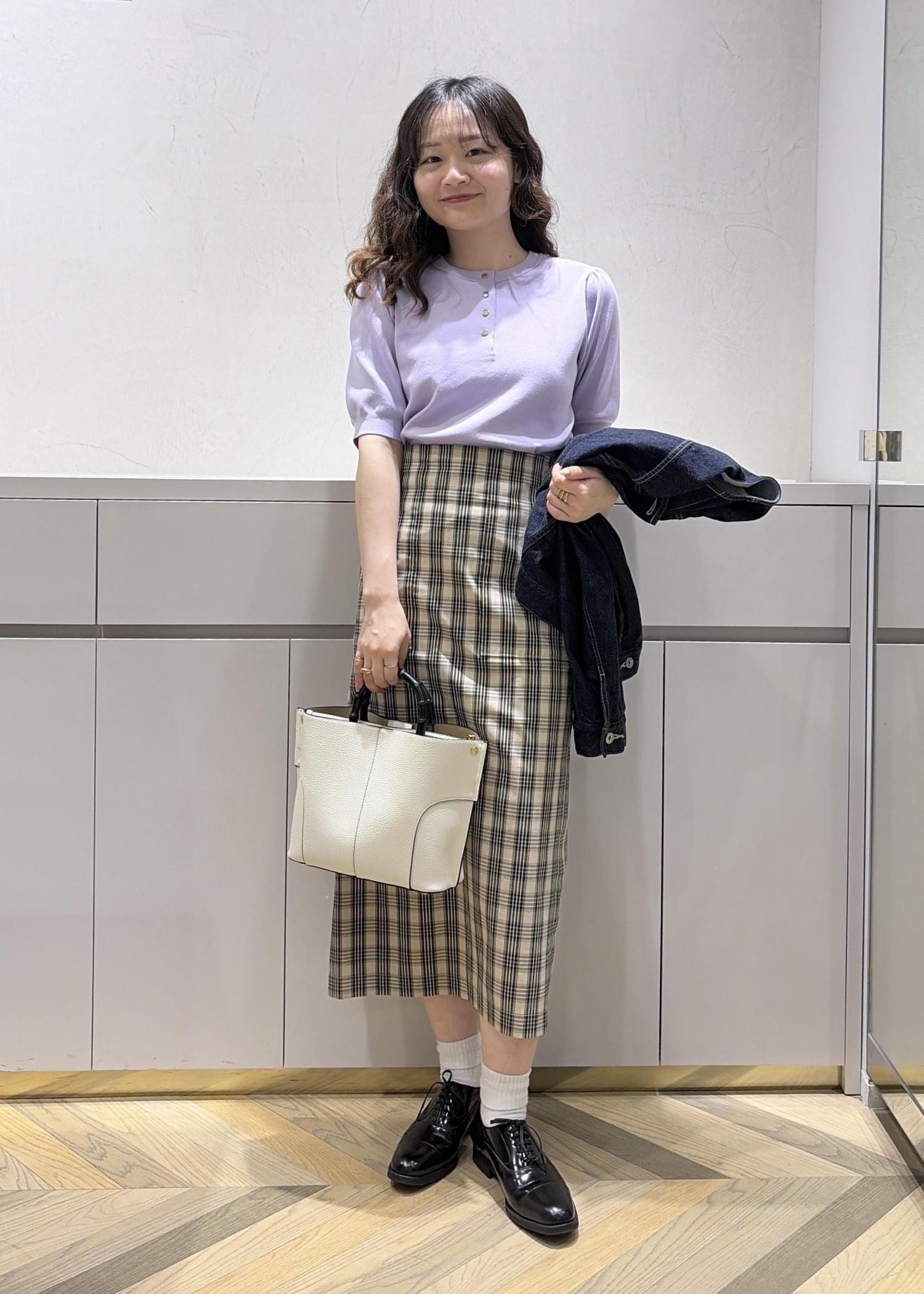 シックな色使いのチェック柄の美人スカートは、