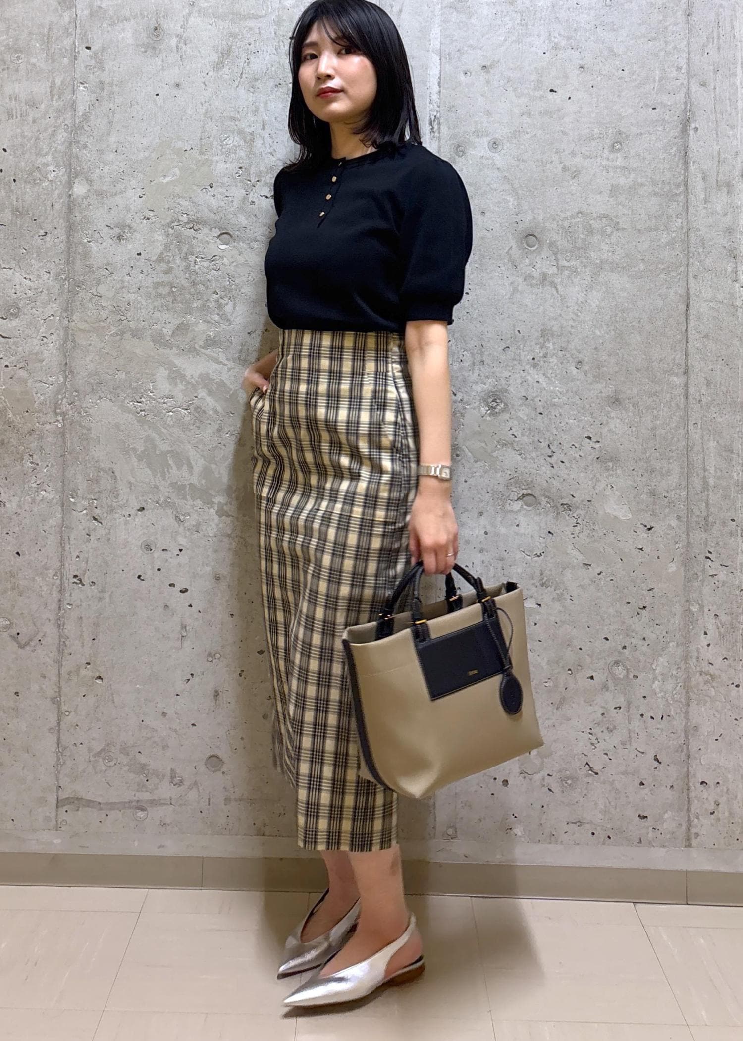 ROPÉ[美人スカート]【DEVEAUX(デヴォー)】別注ハイストレッチチェックポケット付きタイトスカート/イージーケア/26SSベージュ / 38¥29,700レビュー身長164㎝、ボトムが普段38サイズを着用。