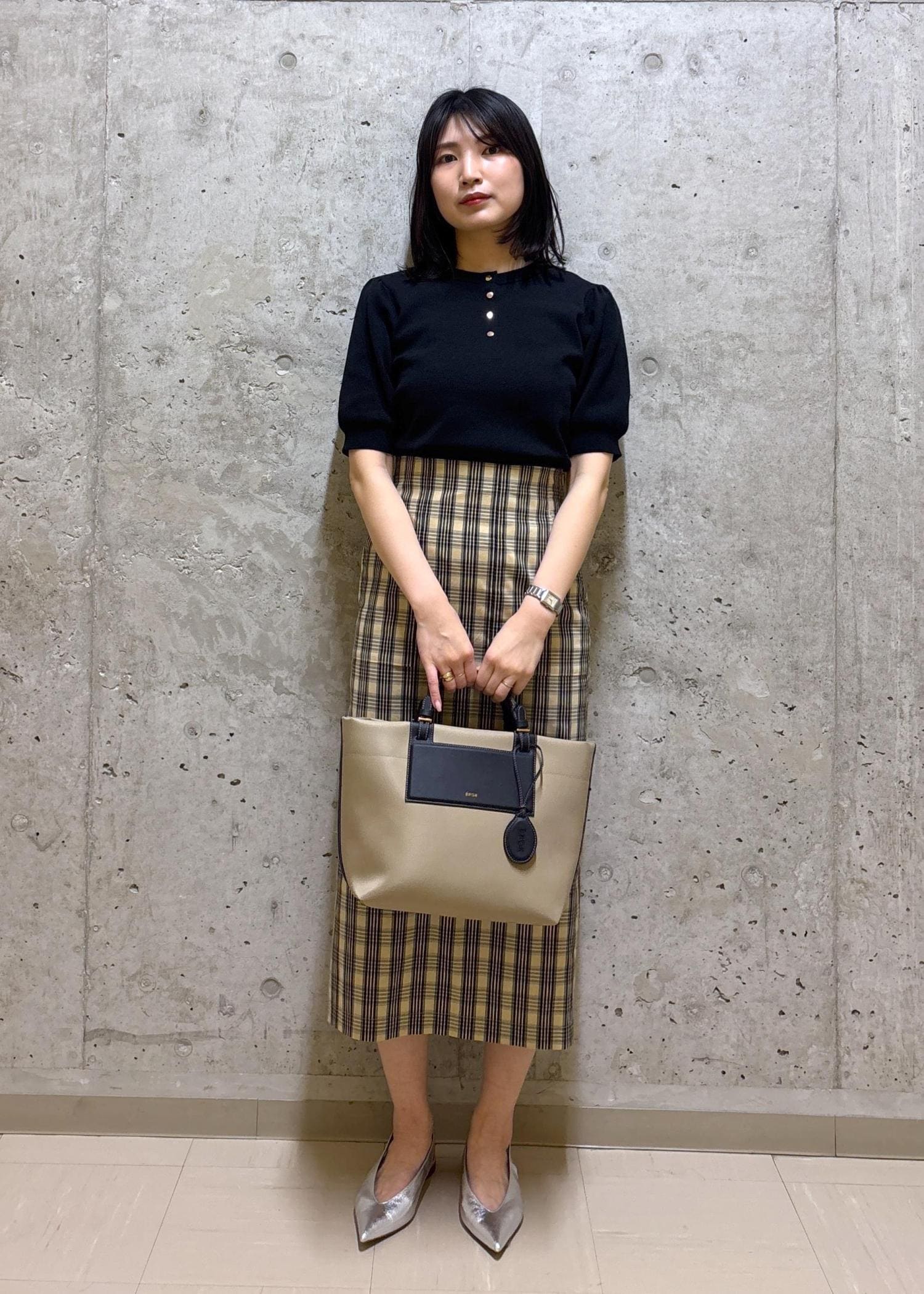 チェック柄がメインのフェミニンコーディネート