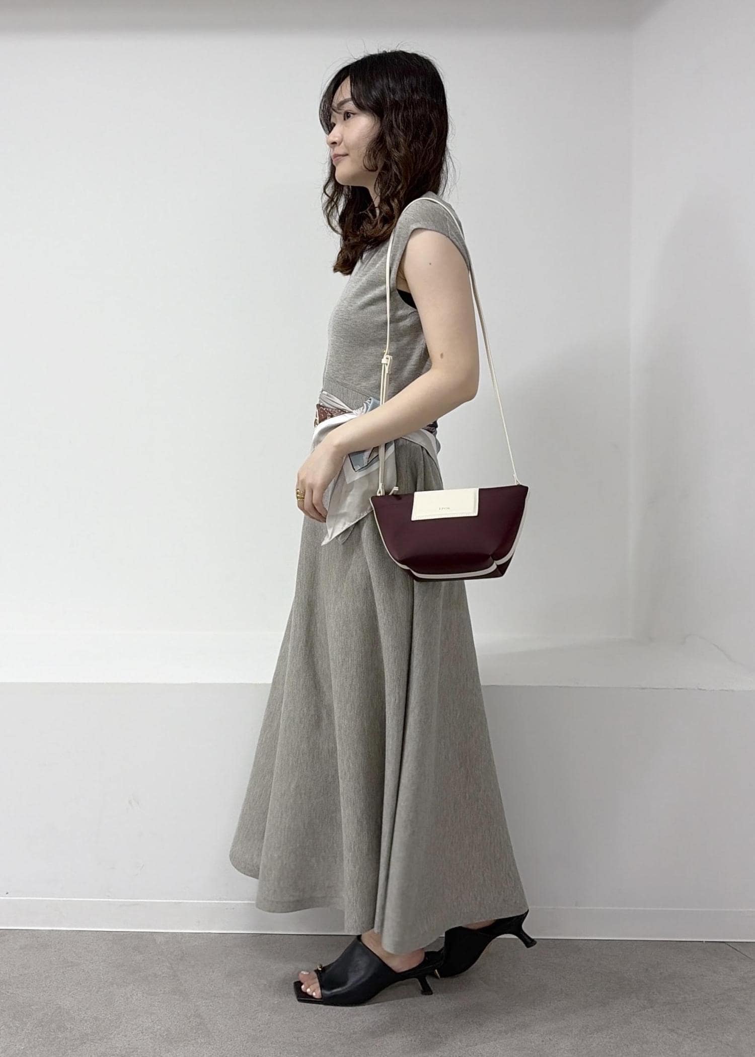 立体感のあるフォルムでマチが大きめ。ハンカチや三つ折り財布、リップなど必要最低限入ります。