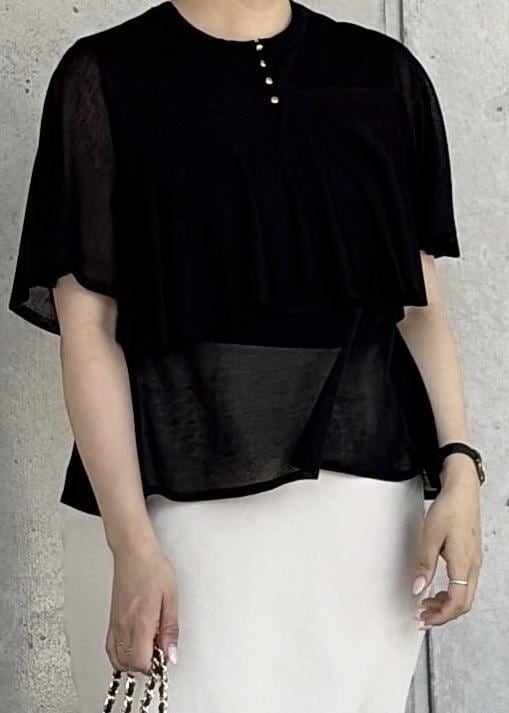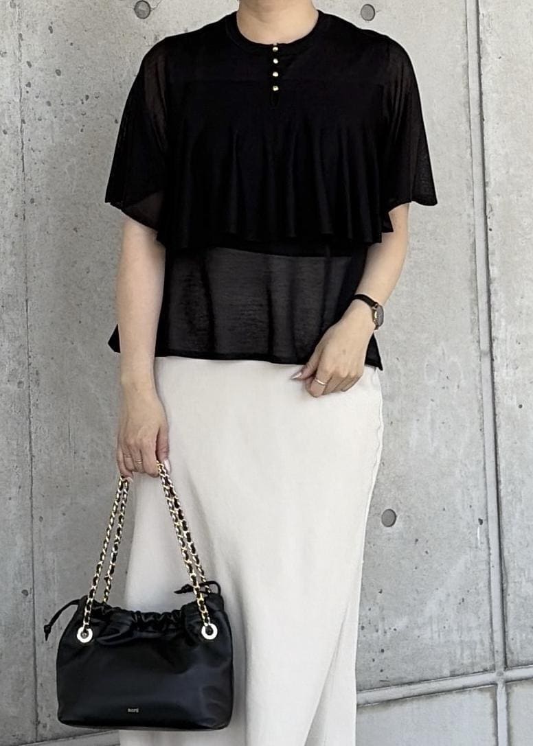 ROPÉLEVITA ティアードフリルニットプルーオーバー/接触冷感・イージーケアブラック / F¥20,900レビュー162センチ 普段トップス38サイズ