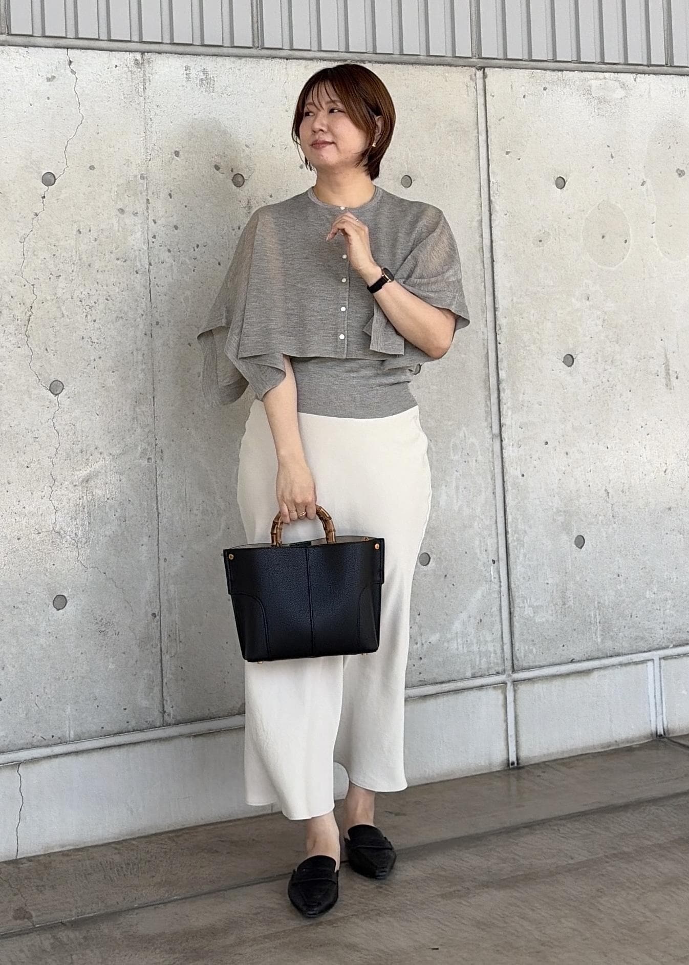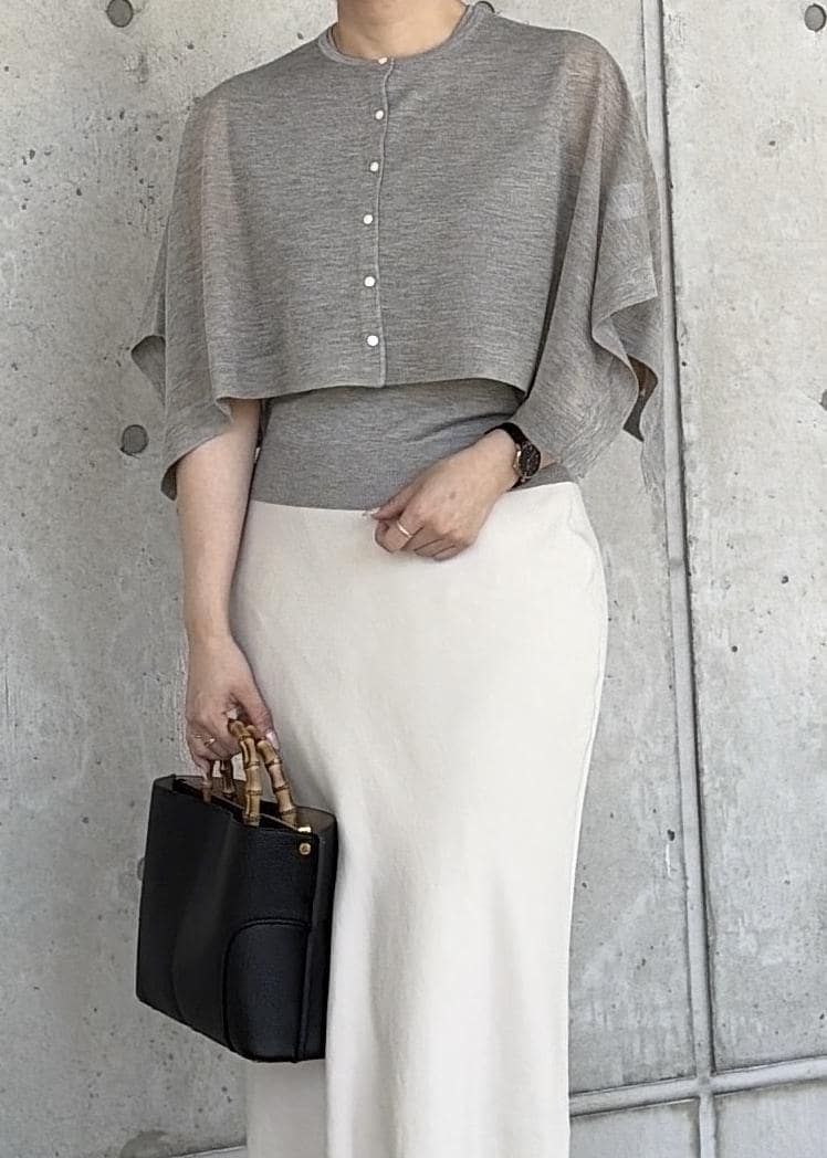 スクエアデザインのケープは気になる二の腕カバーができます。