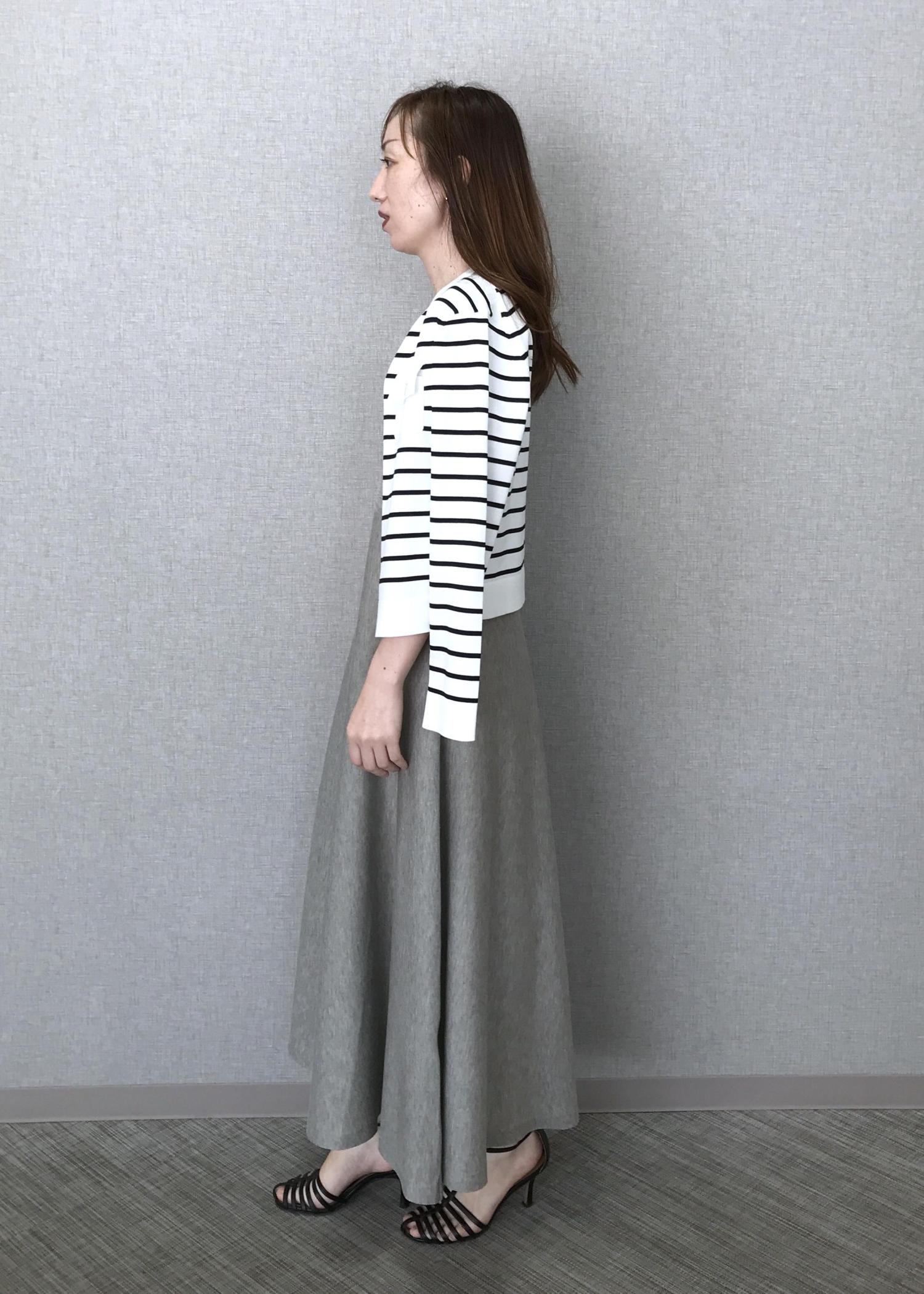 ROPÉポケットディテールコンパクトカーディガン/イージーケアホワイト系 / F¥19,800レビュー肩幅や袖、胴回りはすっきりめでボリュームの出るボトムに合わせる1枚着にも着回せます。