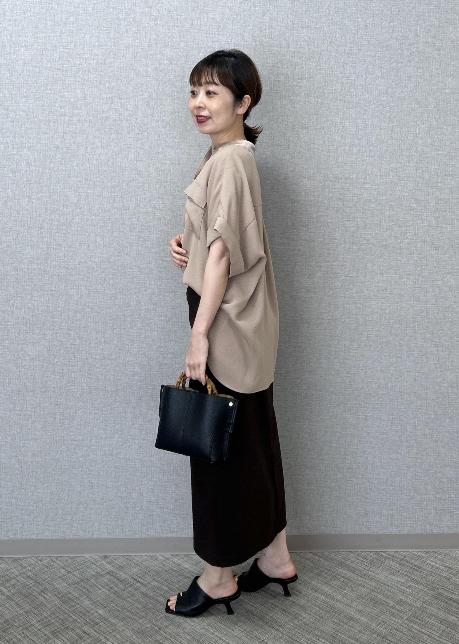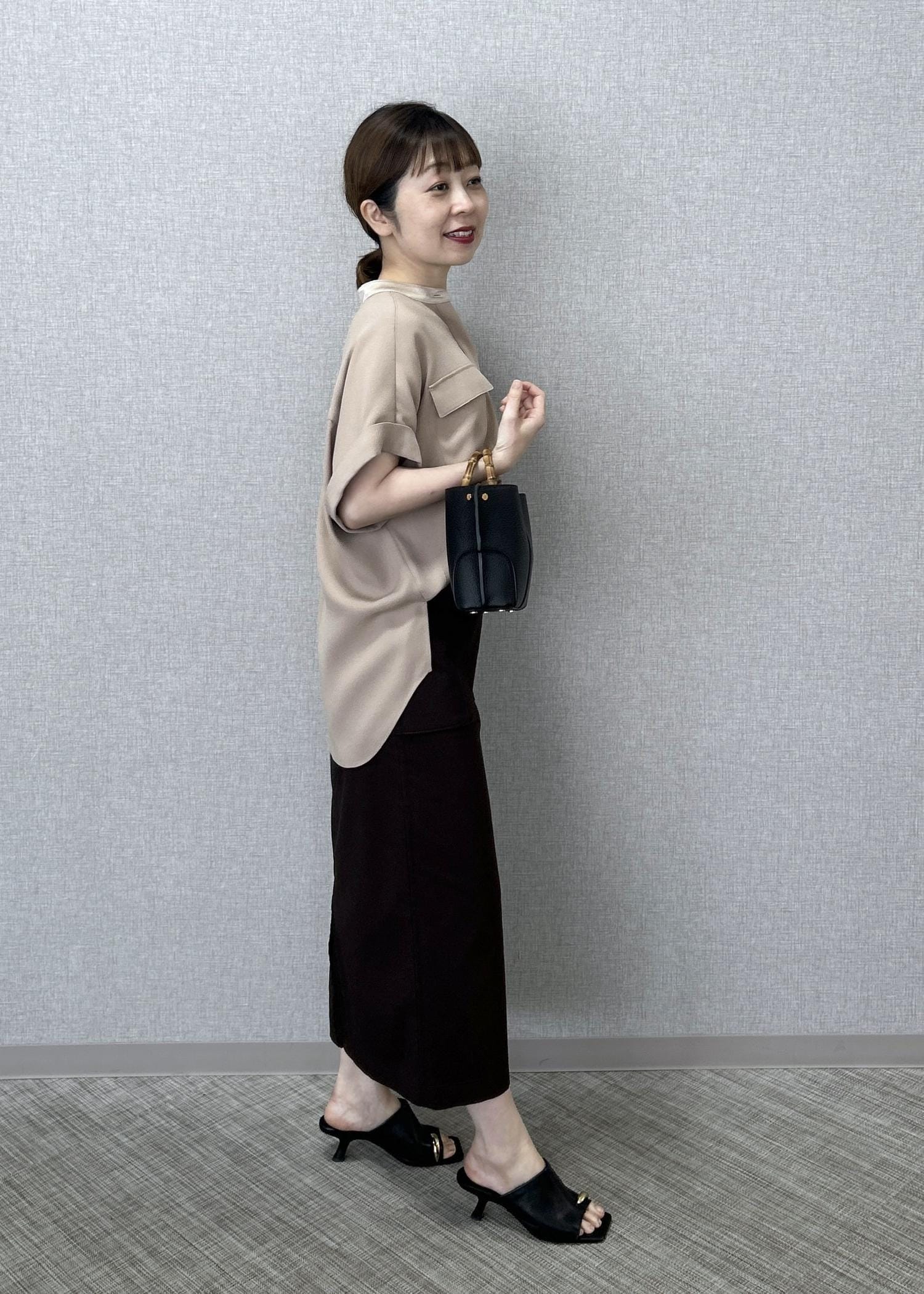タイトスカートはトップスをカジュアルや綺麗めにも、どのジャンルでも合わせやすいです。 -
