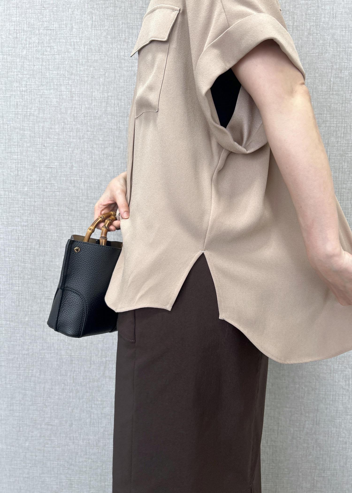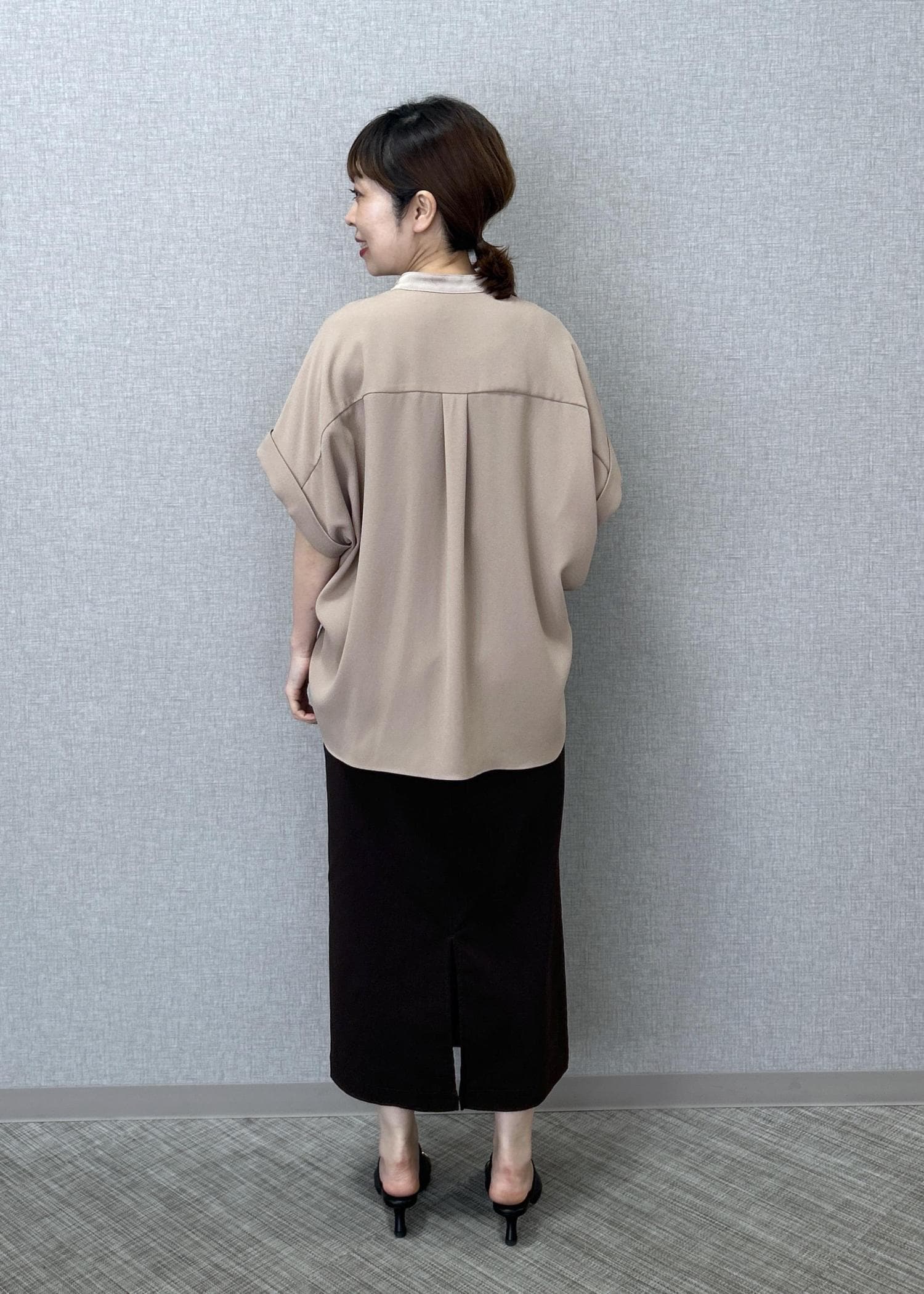 ROPÉライトトリアセバックサテンフラップブラウス/イージーケア・セットアップ対応ベージュ / F¥25,300レビュー着丈が前後で3cm程表側が短いです。