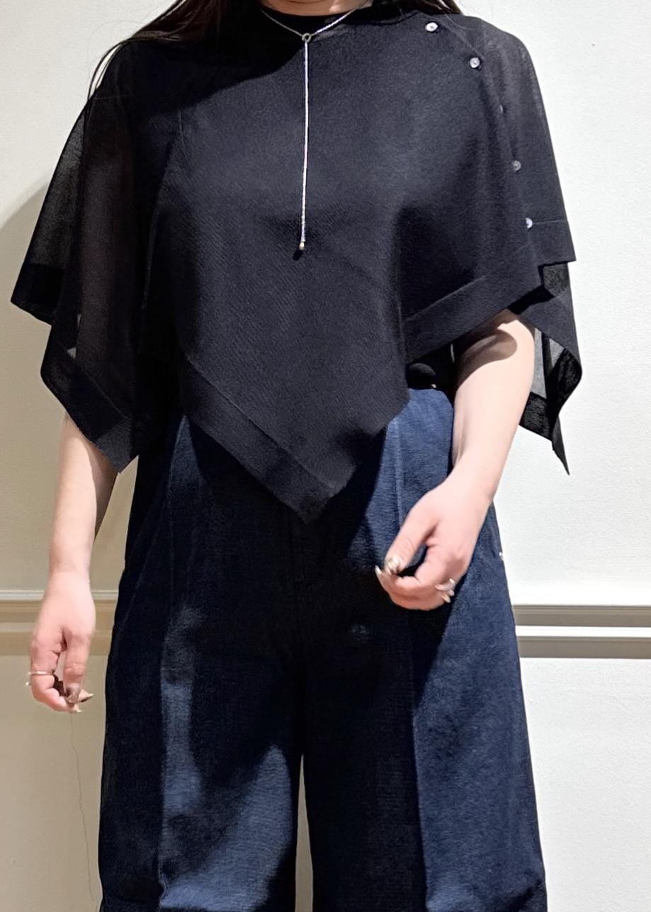 ケープのボタン位置を片側に持っていくことで、軽やかな肌見せも出来ます。 -