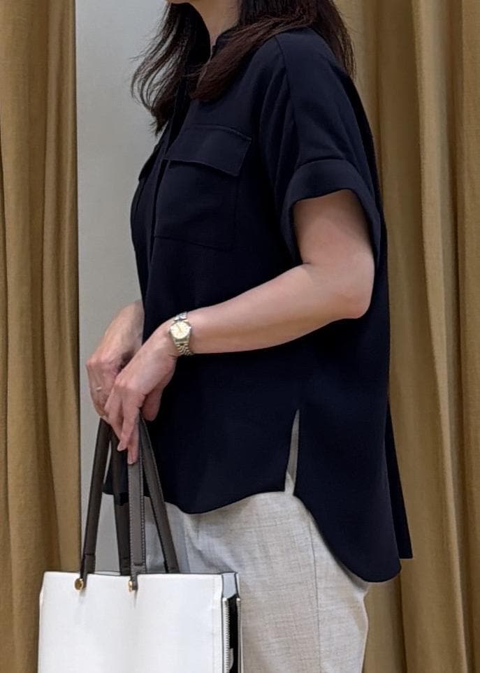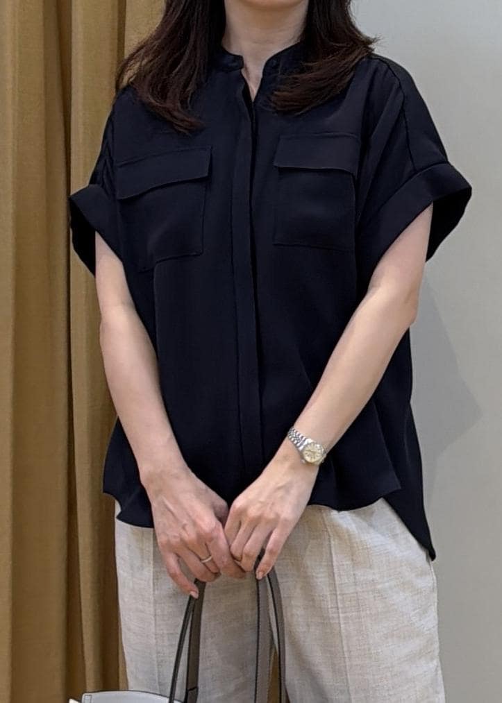 ROPÉライトトリアセバックサテンフラップブラウス/イージーケア・セットアップ対応ネイビー / F¥25,300レビューサラッとしていてトロミがあり肌離れの良い生地感で着心地良いです。