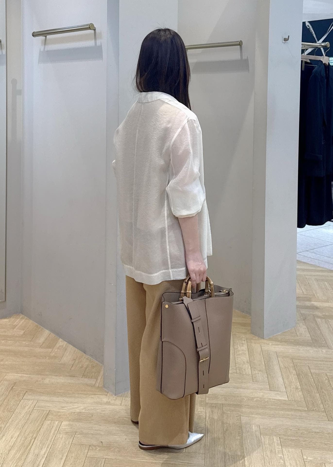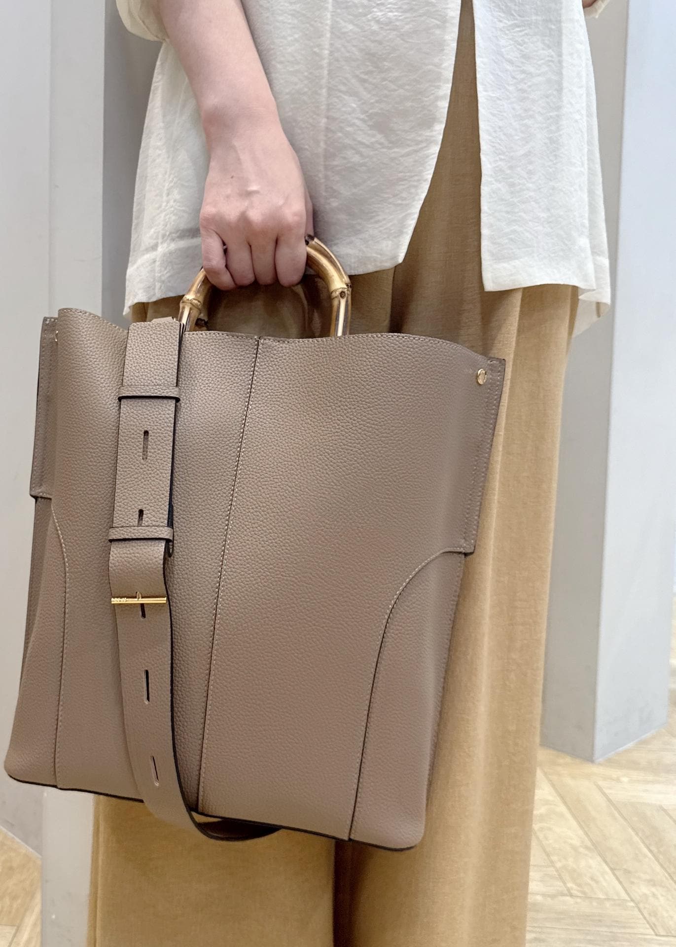 ROPÉ【E'POR】BAMBOO BAG Large/A4対応・通勤・26SS新色ベージュ系 / F¥19,800レビュー縦型の3構造なので書類・薄めのファイルが入って収納しやすいです。