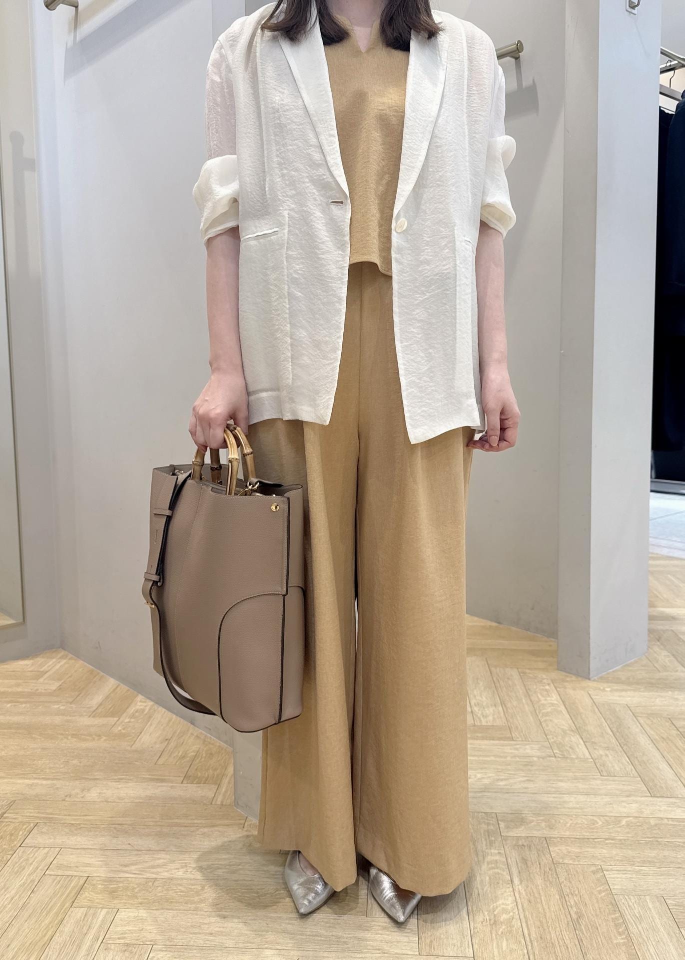 ROPÉバックオープンオールインワン/イージーケアベージュ / F¥27,500レビューオールインワンでもカジュアルすぎず、短めトップスとのセットアップのように見えるデザインです。