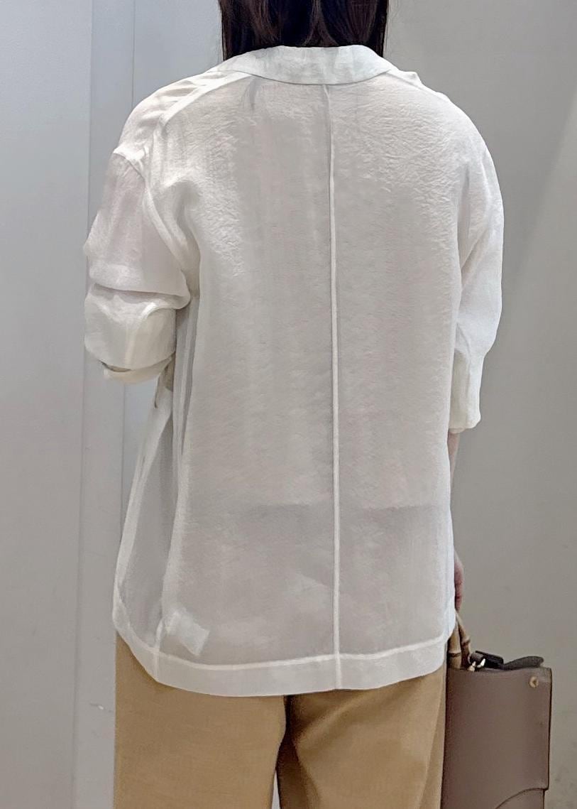 ROPÉシアーライトジャケット/イージーケアオフホワイト / 38¥29,700レビューとても軽くて羽織っていないかのような着心地です。素材も滑らかで、肌にまとわりつかないゆとりがあります。