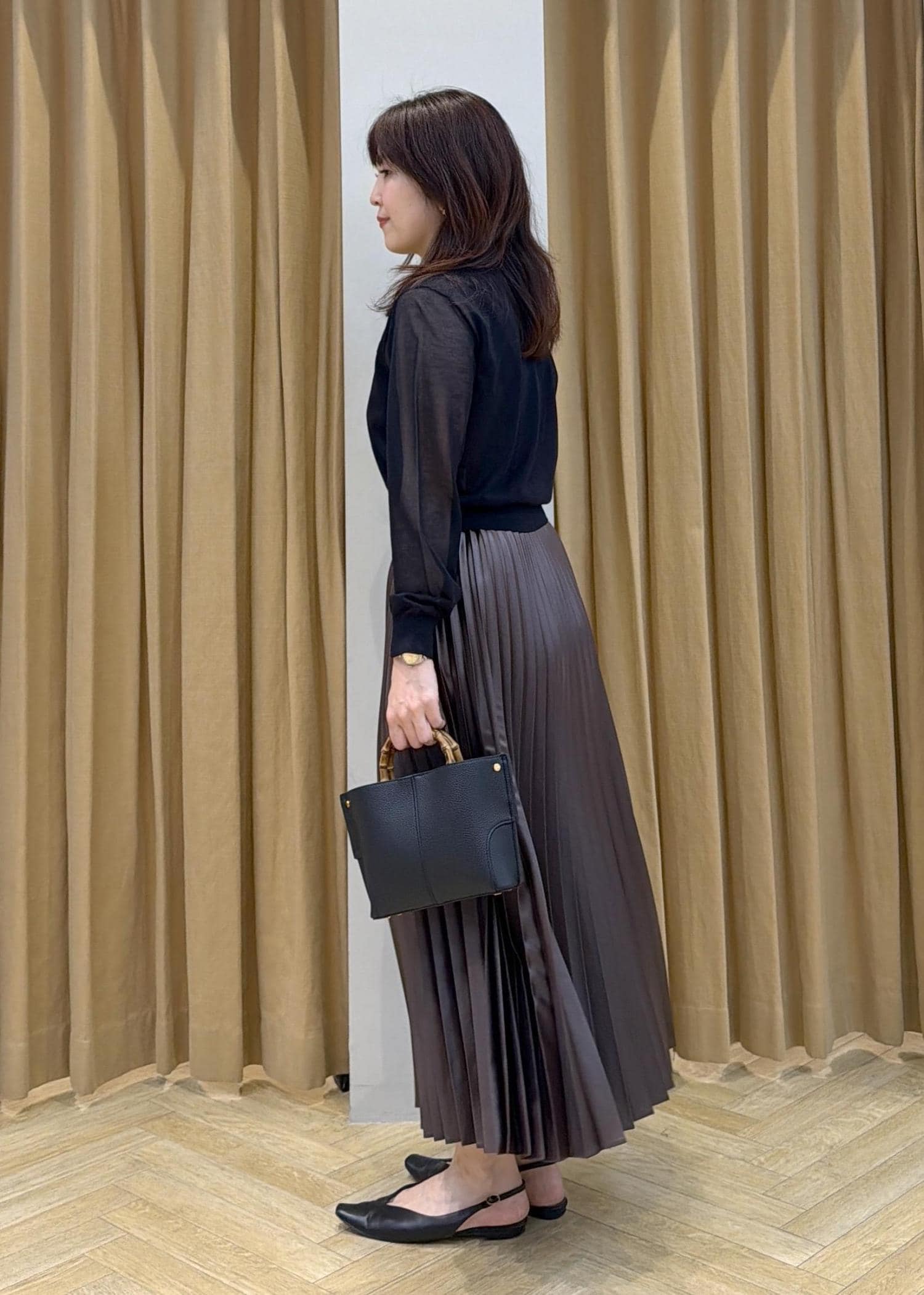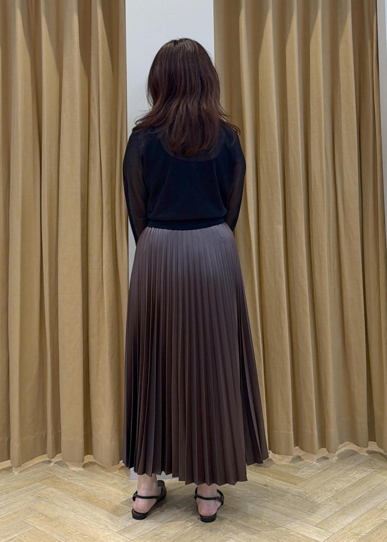 ROPÉシャイニープリーツスカート/イージーケアダークブラウン / F¥26,400レビューウエストゴムのフリーサイズで楽に履けました。