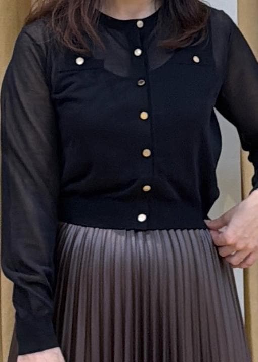 NEW!ROPÉLEVITA 金ボタンクルーネックシアーカーディガン/接触冷感・イージーケアブラック / F¥20,900レビューシャリっとした清涼感なのある素材。