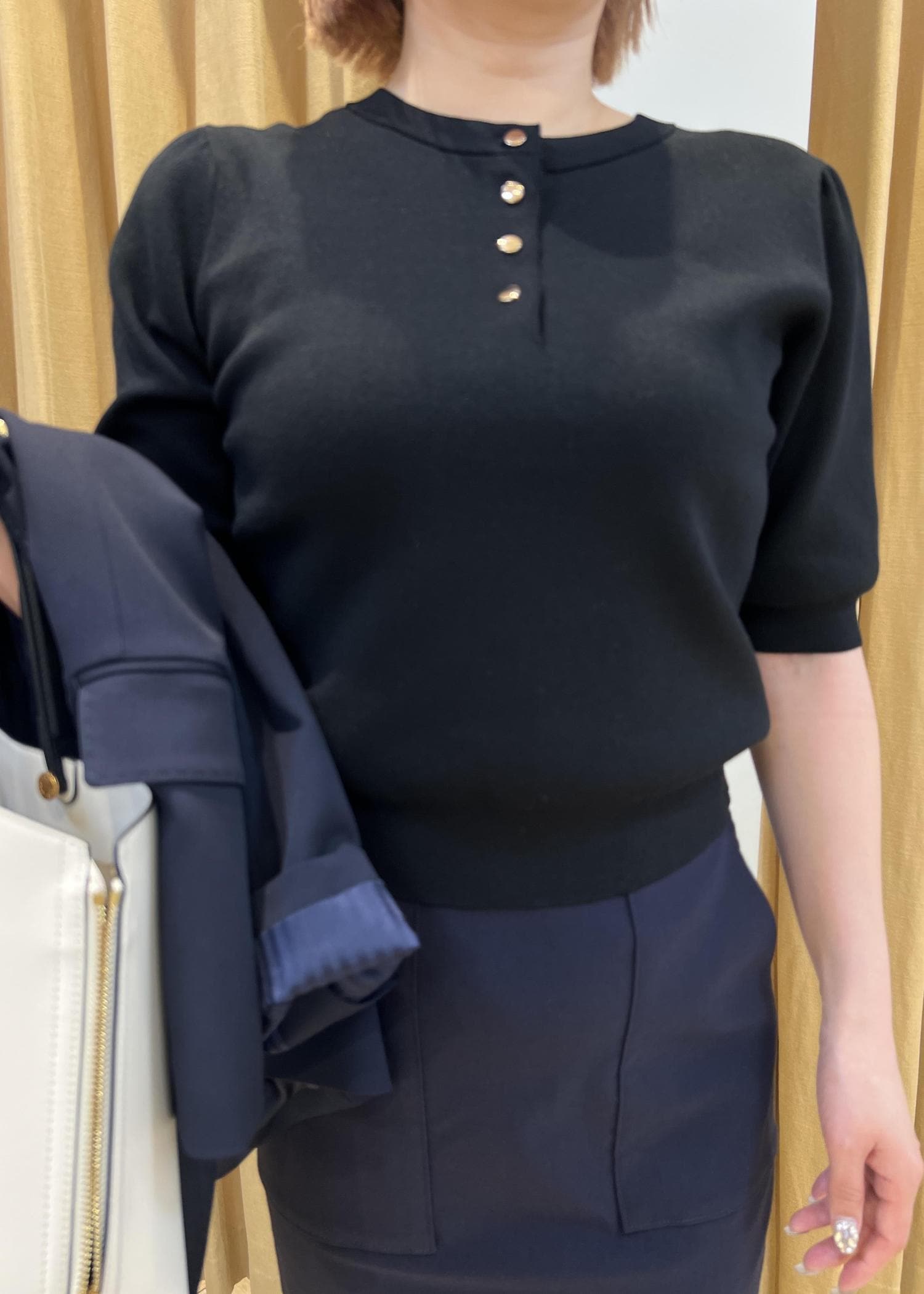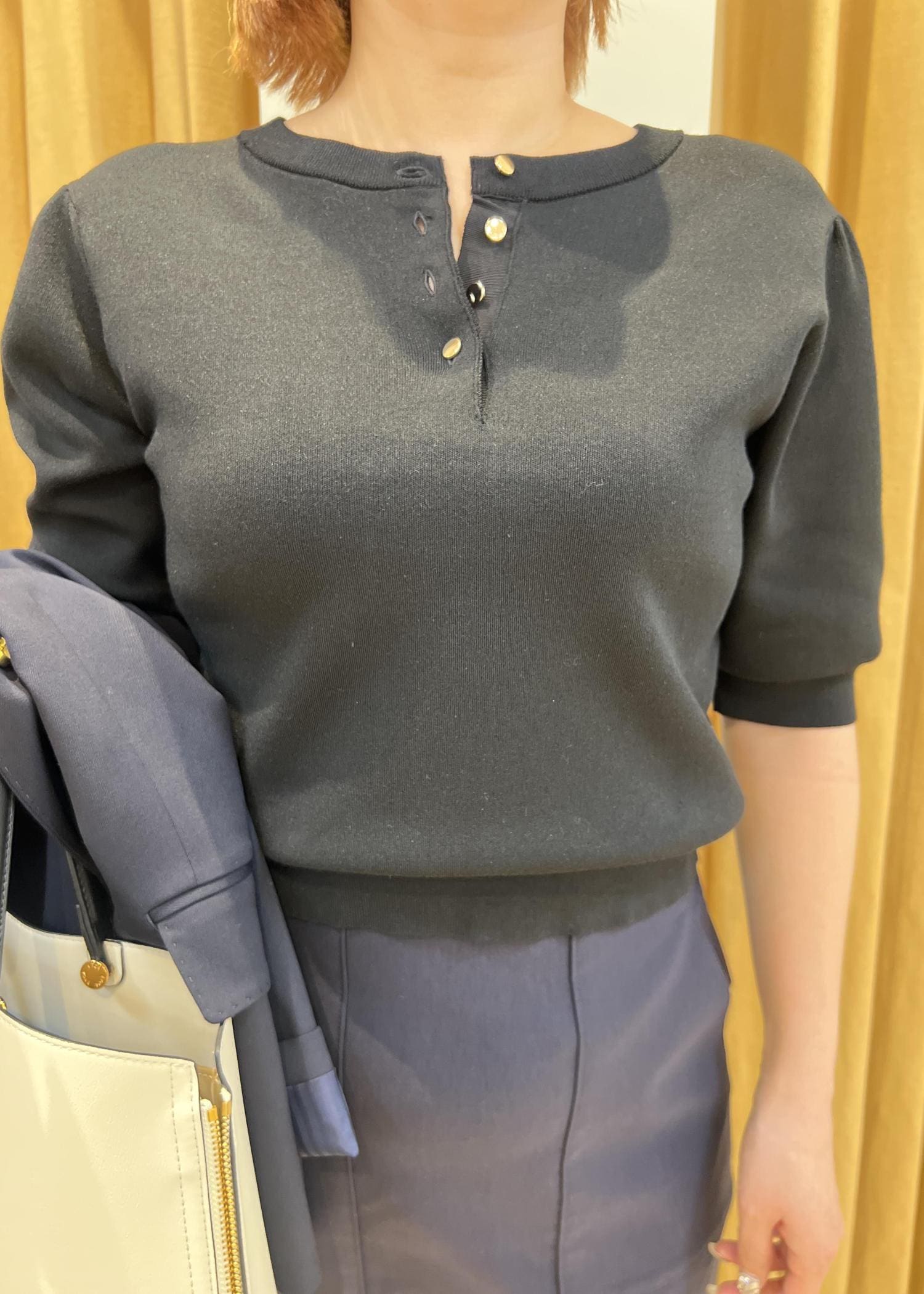 ROPÉ前後2WAY5分袖プルオーバー/イージーケアブラック / F¥15,400レビュー着丈は腰骨あたりのコンパクトながら身幅は程よいゆとりがあります。