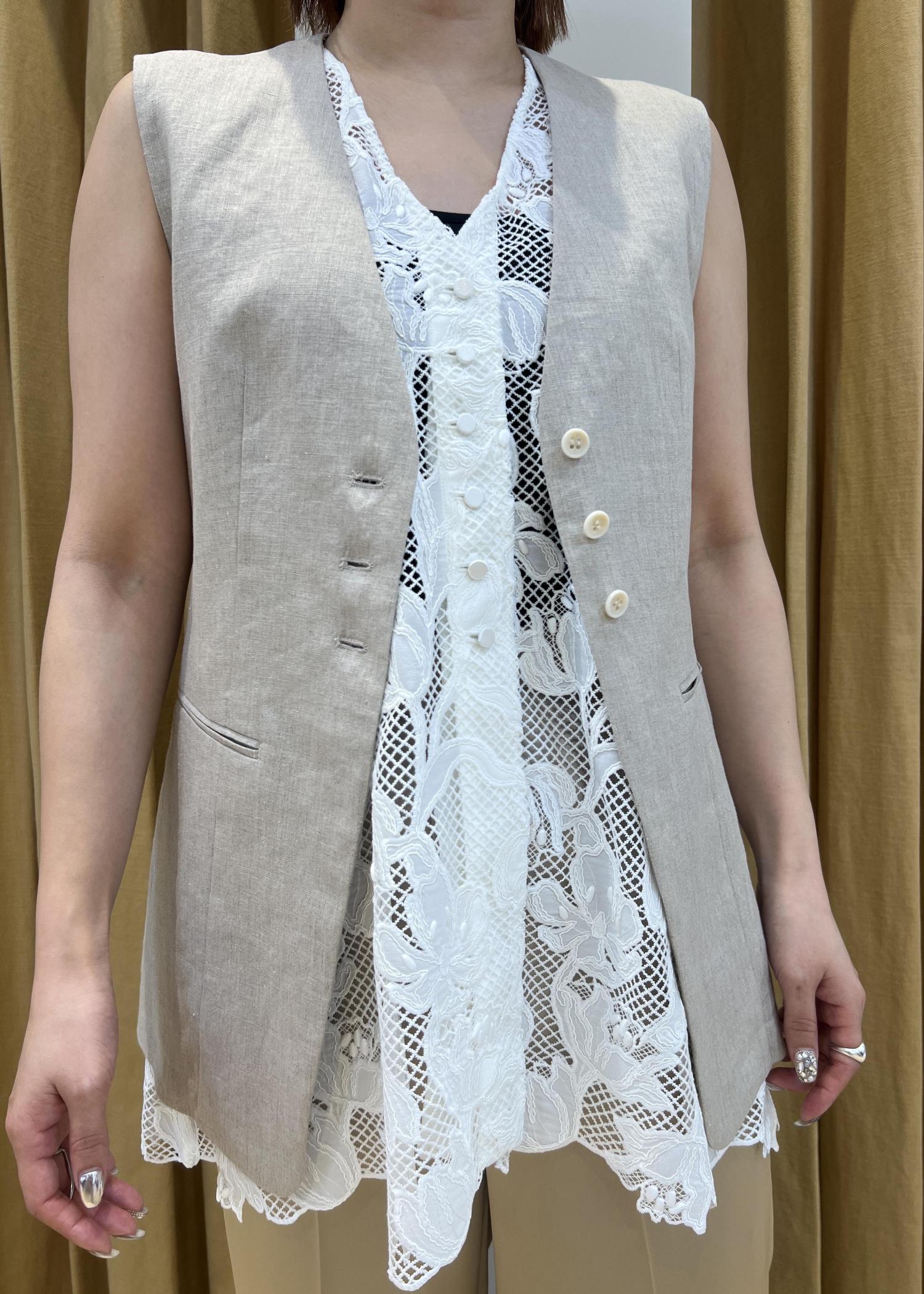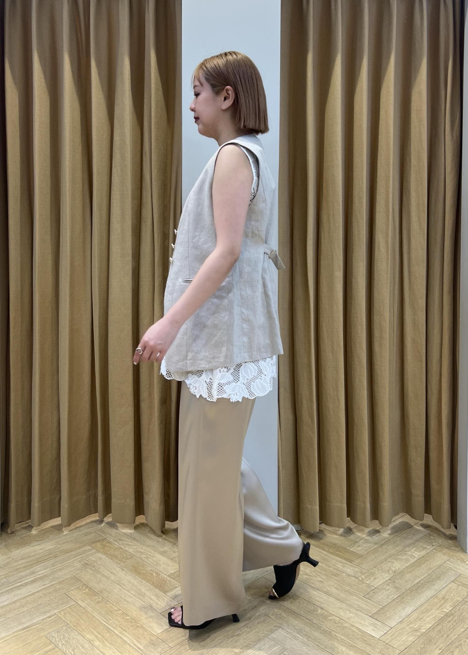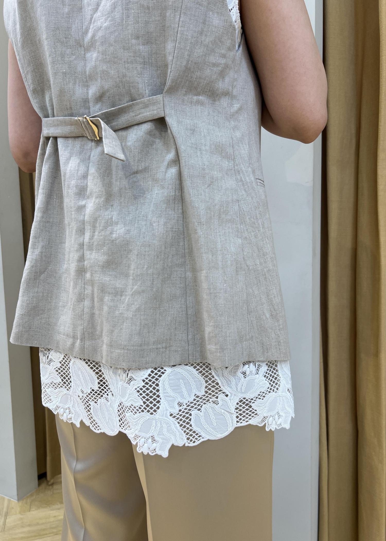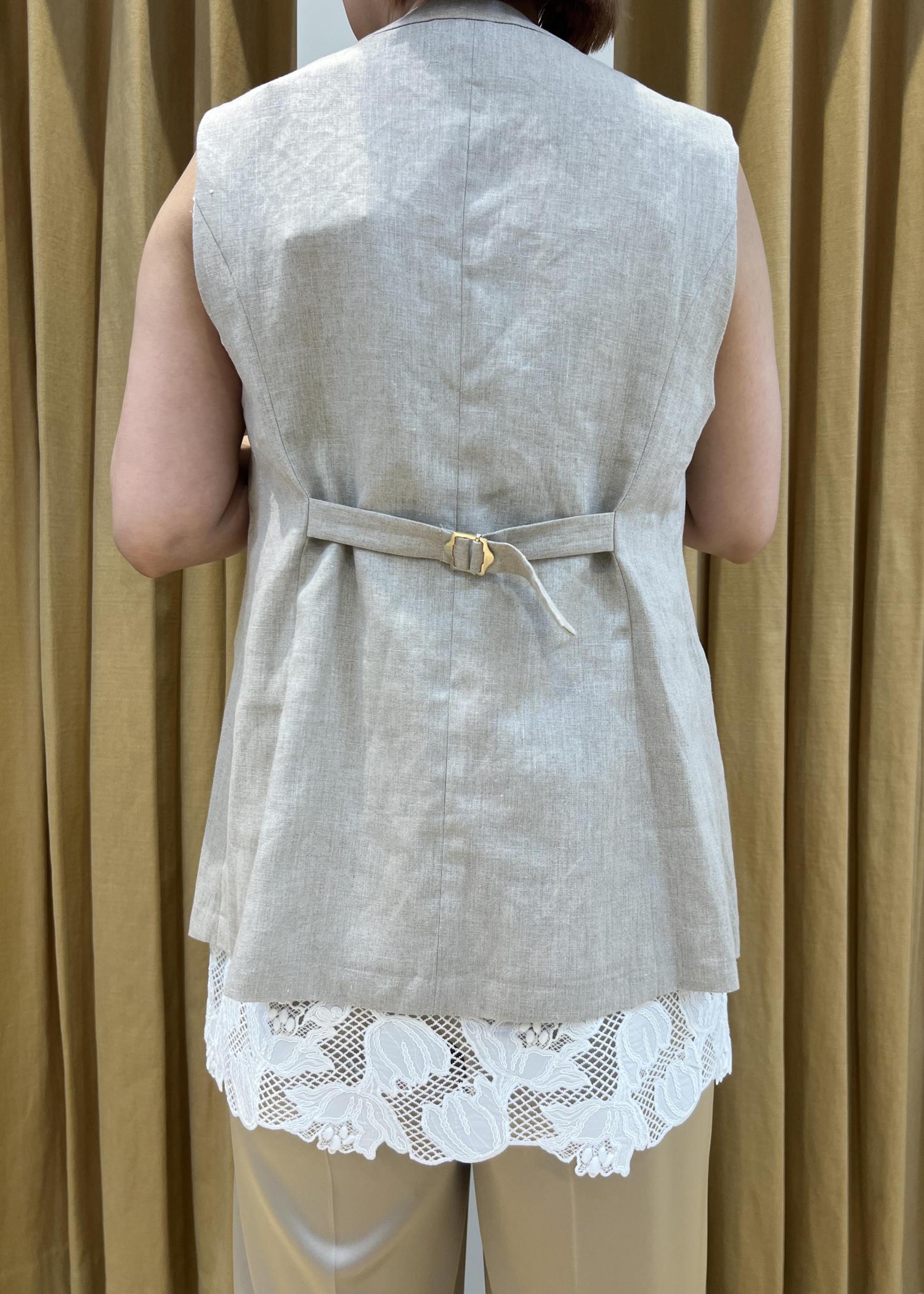 ROPÉリネンスリーブレスジレ/セットアップ対応ベージュ / F¥27,500レビュー程よいサイズ感で着丈はヒップが隠れる長さです。