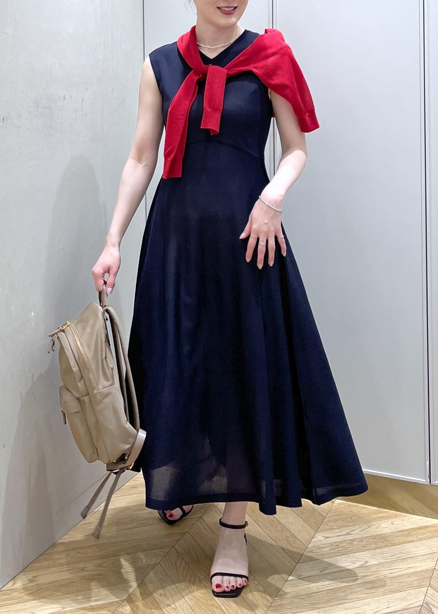 NEW!ROPÉLEVITA ニットワンピース/接触冷感・イージーケアネイビー / F¥27,500レビュー身長165cm フリーサイズ着用