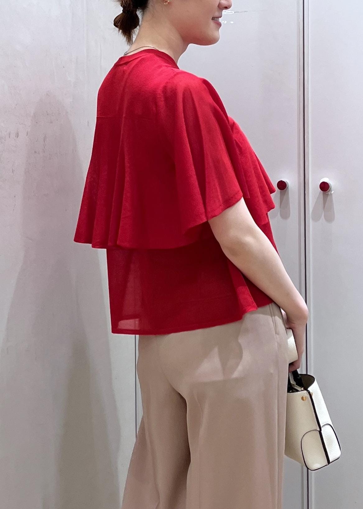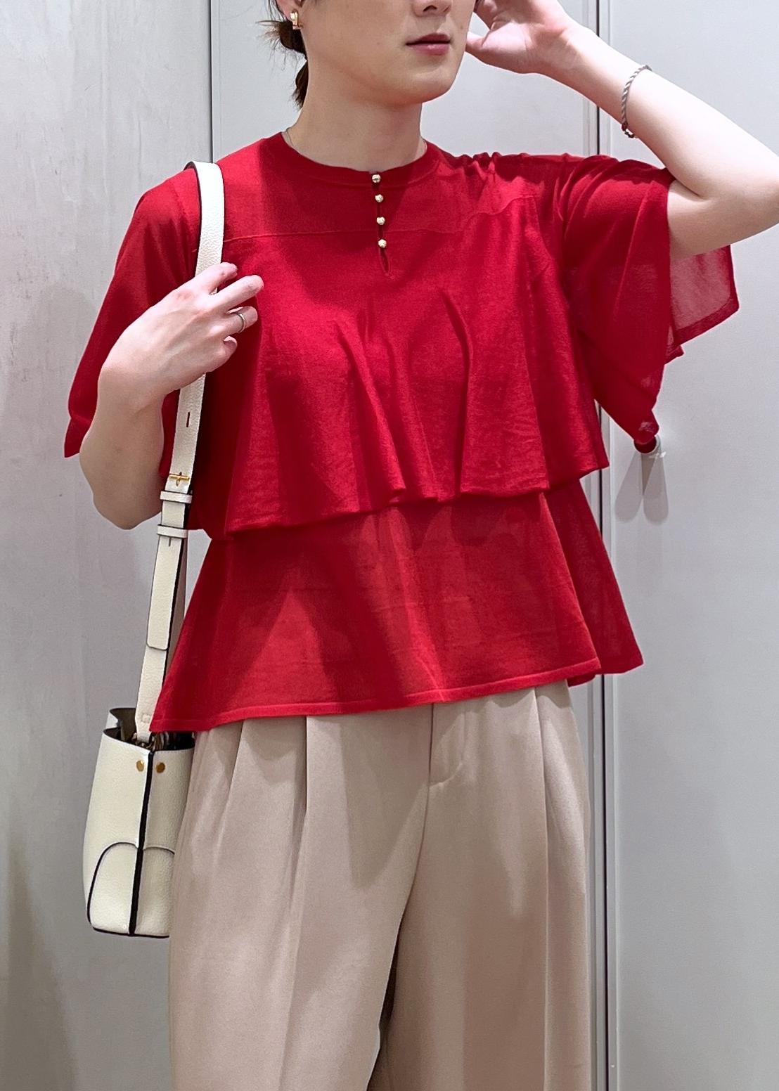 NEW!ROPÉLEVITA ティアードフリルニットプルーオーバー/接触冷感・イージーケアレッド / F¥20,900レビュー身長165cm フリーサイズ着用