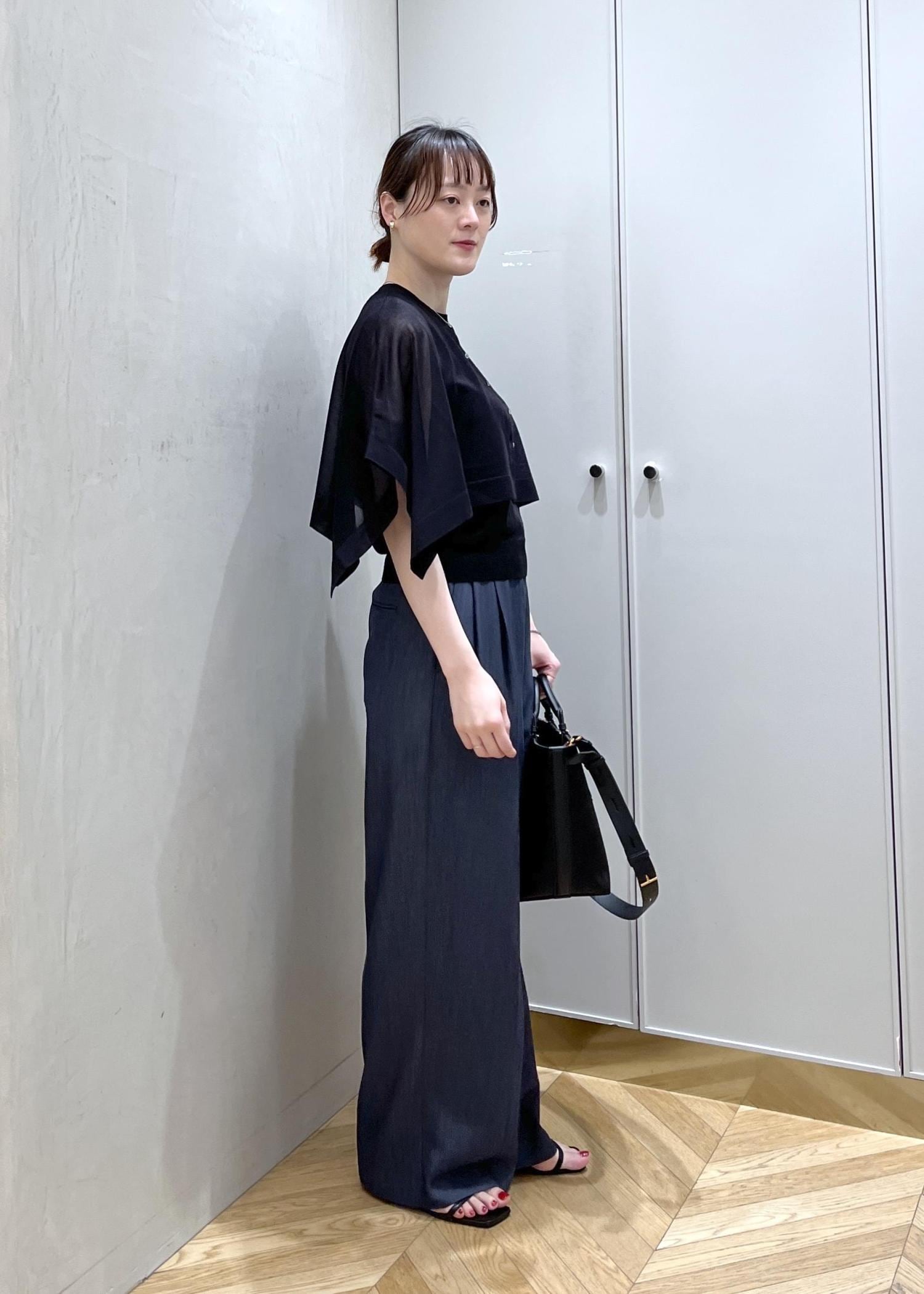 ダークカラーですが、トップスにシアー感があるので、重たくなりにくいです。