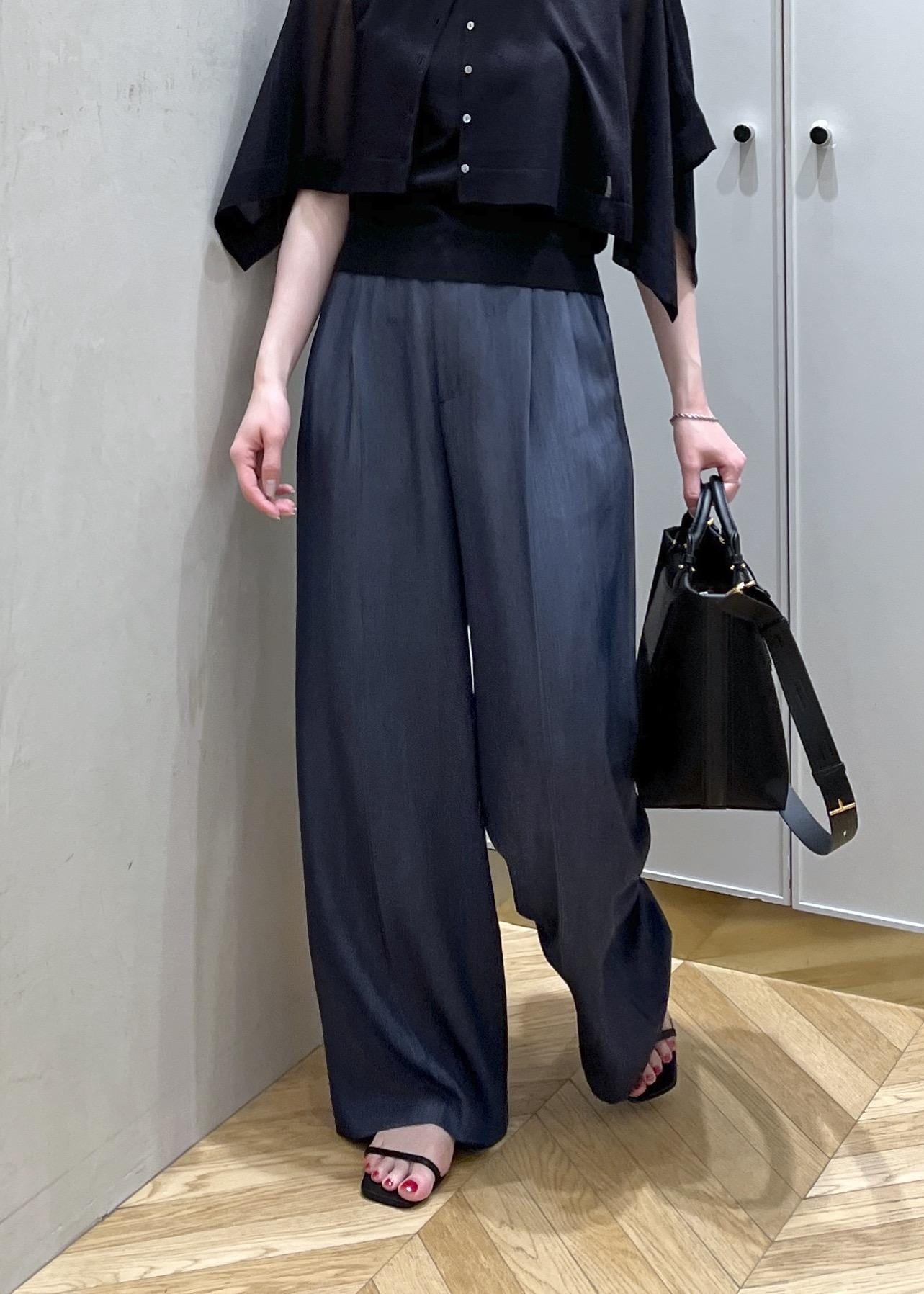 デニムのような硬さはなく、薄手で落ち感のあるお素材です。透けが無いので、どのシーズンも安心してお使い頂けます! -
