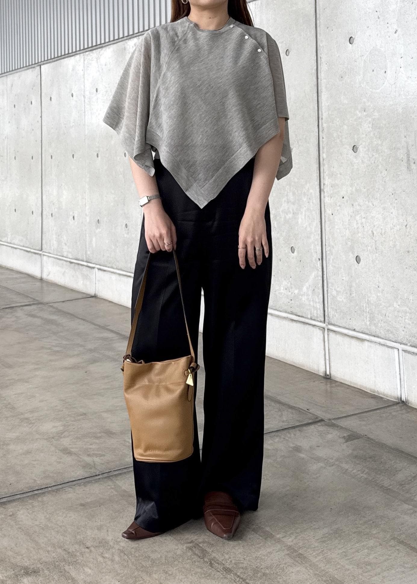 変わりデザインなケープニットがポイントのアンサンブル♡