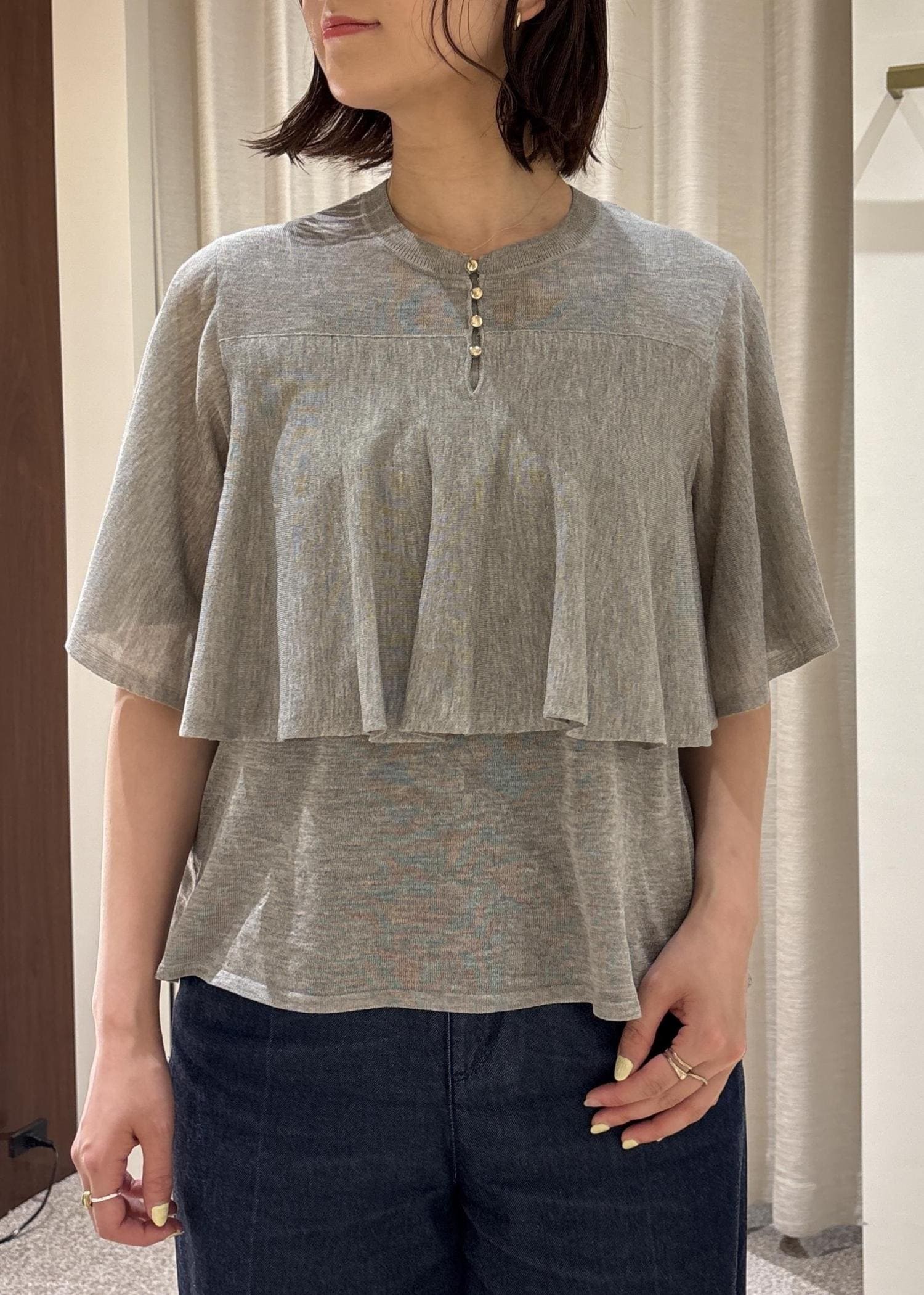 トップスはシワになりにくい、洗える、サラッとベタつかずに着れる万能なトップスです◎