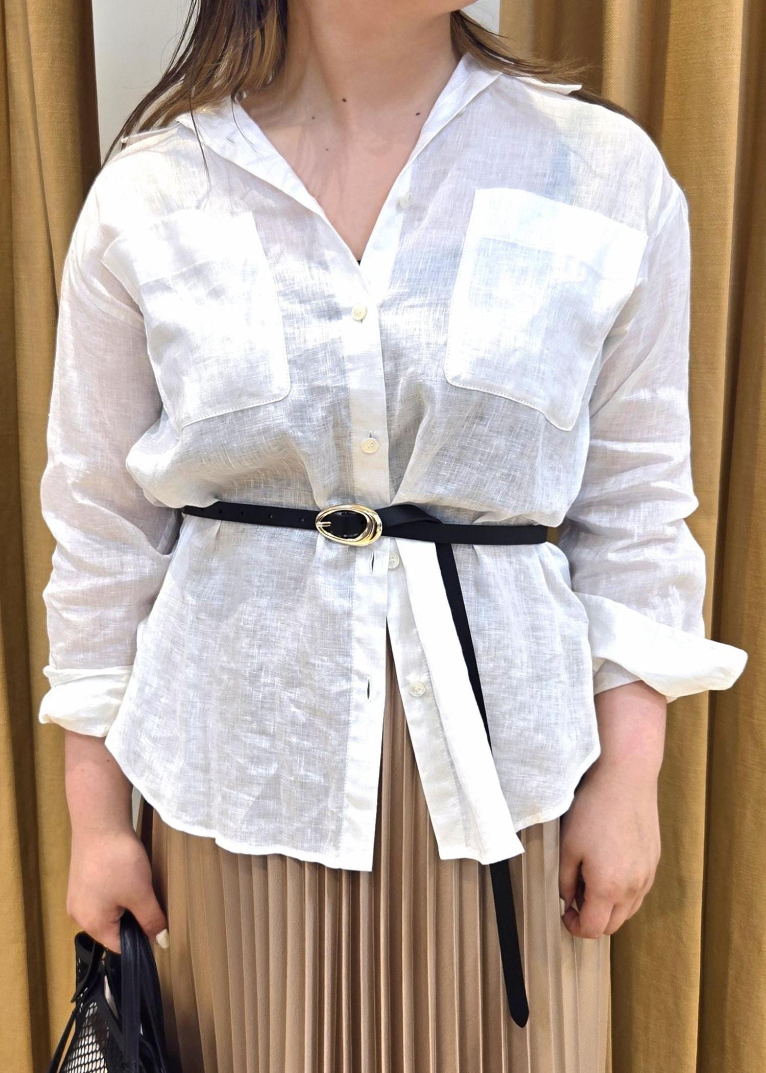 暑くなるとドライタッチなお素材が肌にふれても快適にすごせます。リネンシャツは透け感が底まで強くないですが、涼しく着れるアイテムです。