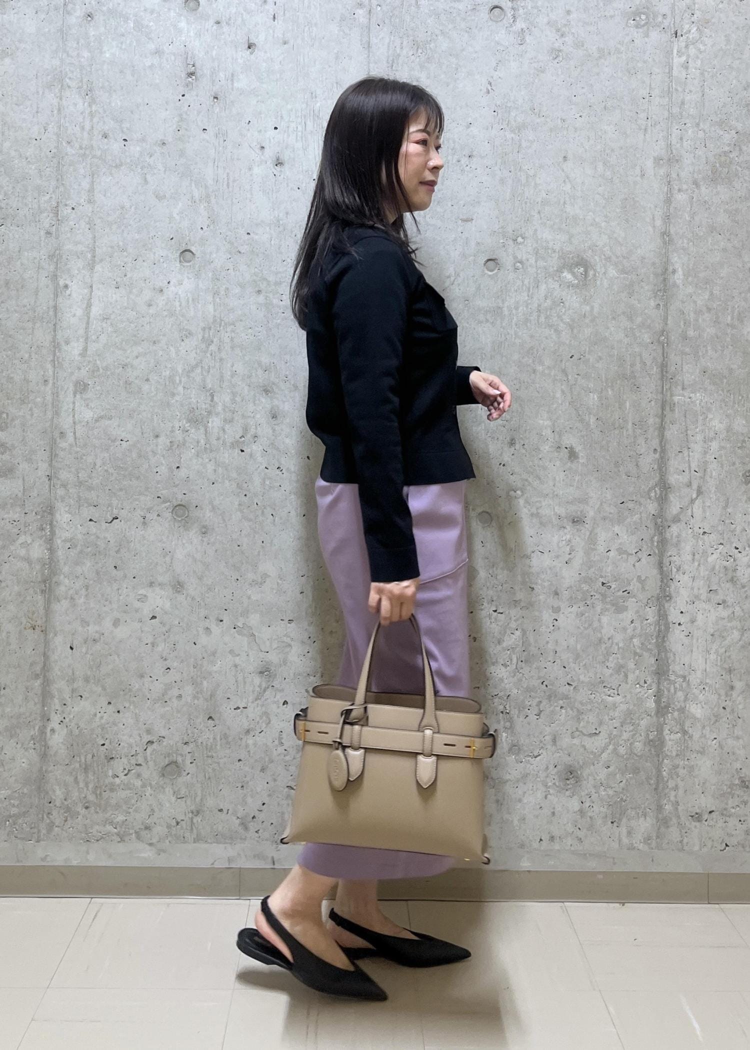 トップスもスカートも伸縮性がありるので、キッチリと見えて楽に着れるコーディネートです。