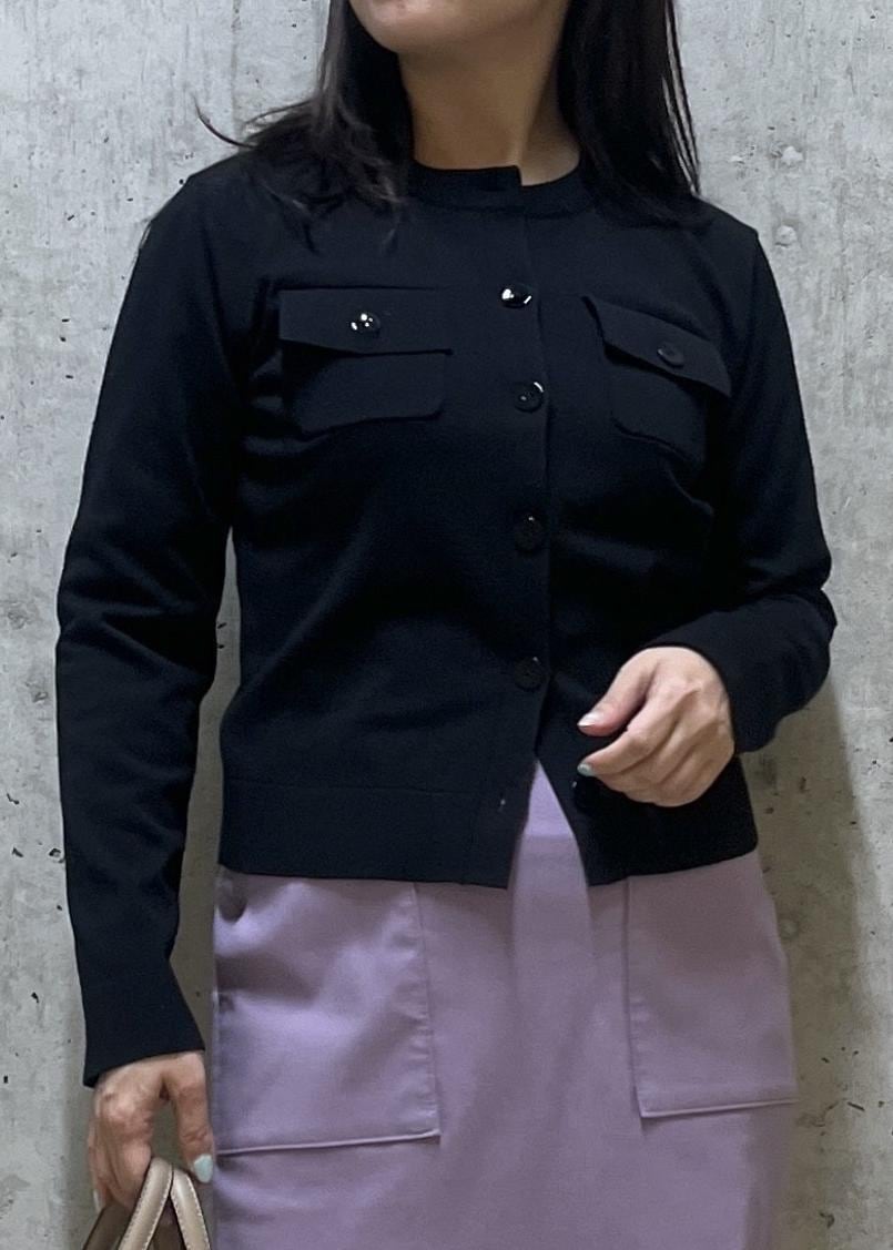ROPÉポケットディテールコンパクトカーディガン/イージーケアネイビー / F¥19,800レビューコンパクトなサイズ感ですが、身体のラインを拾いすぎず着れました。