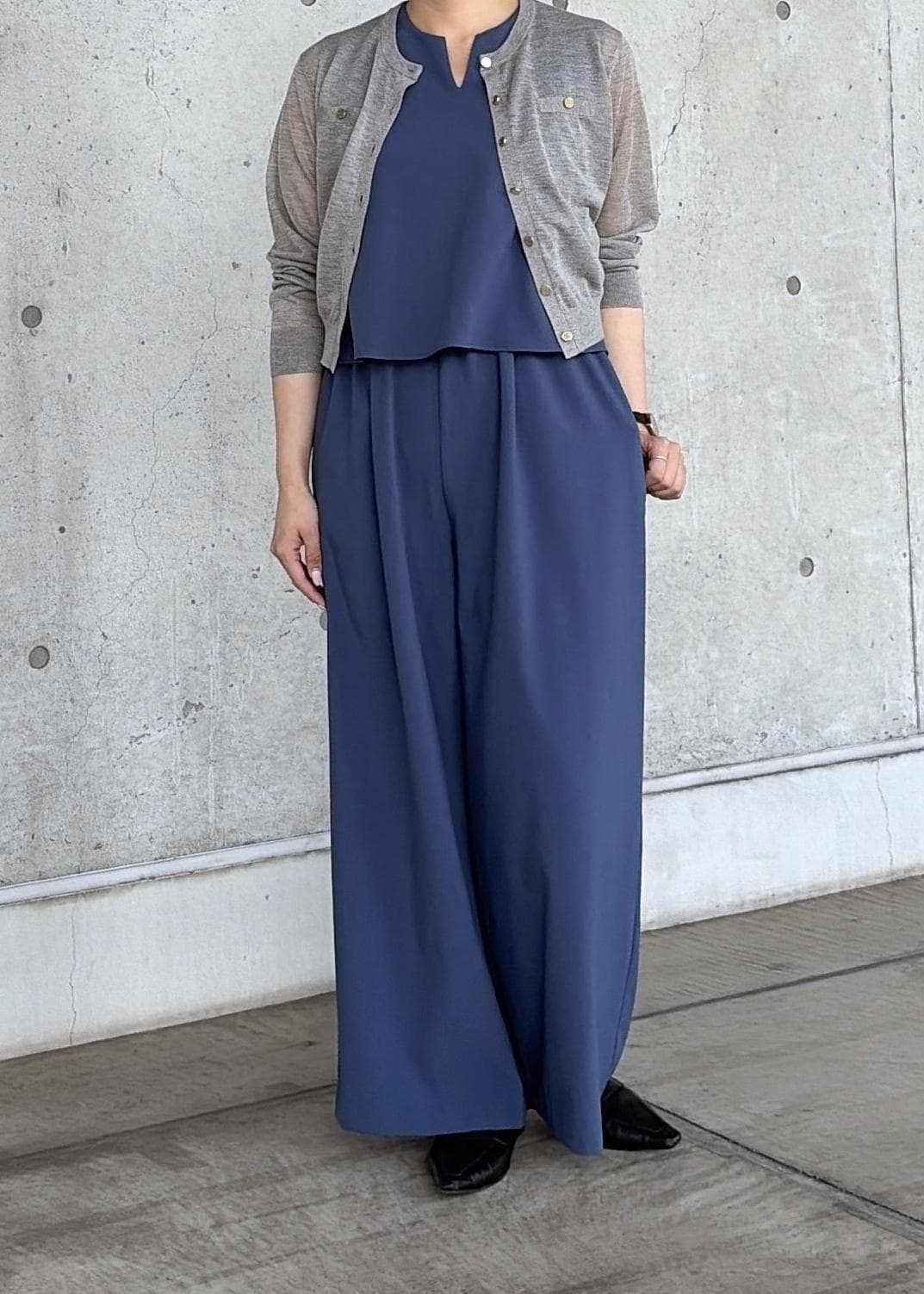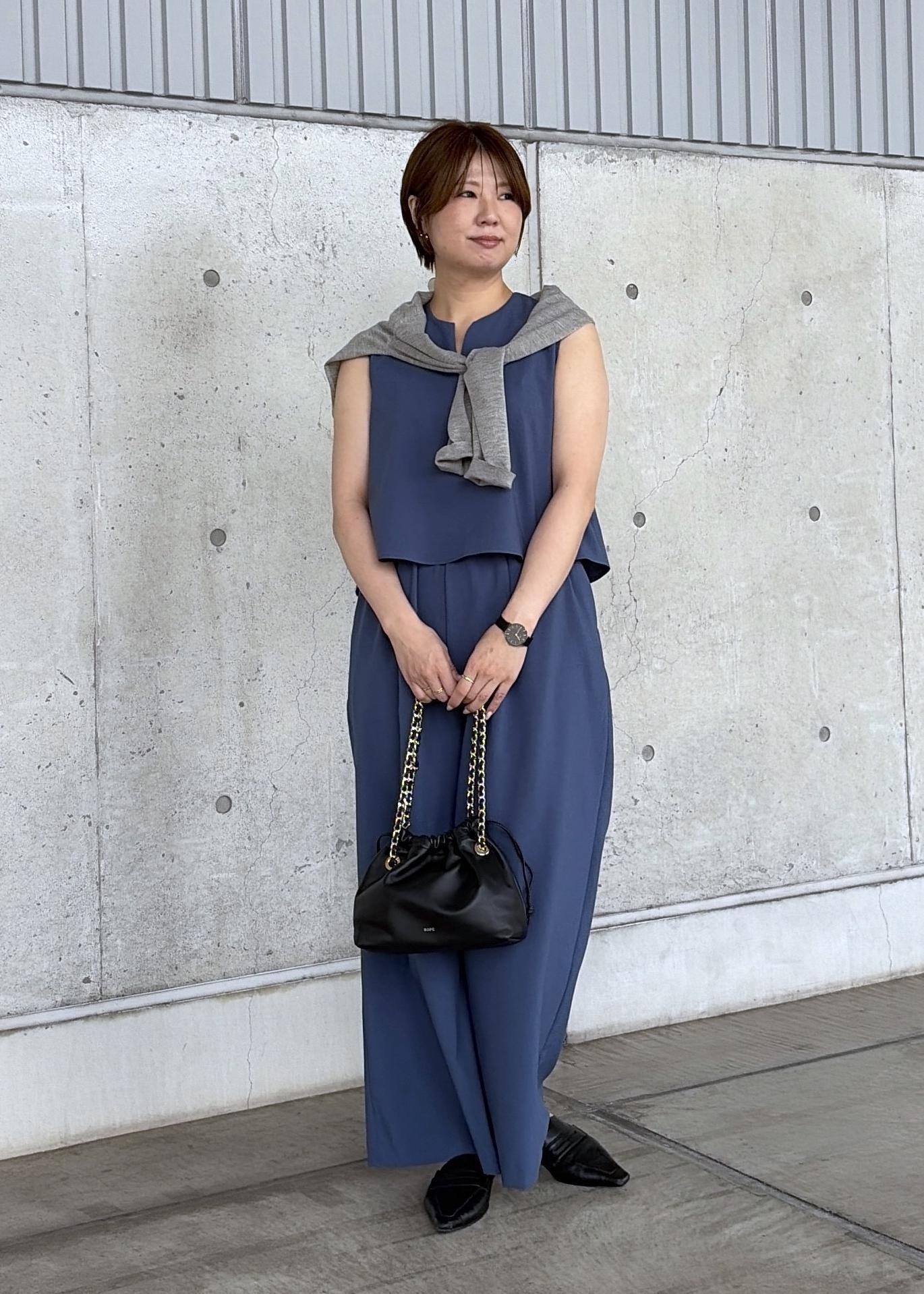 ROPÉバックオープンオールインワン/イージーケアブルー / F¥27,500レビュー162センチ フリーサイズ着用。
