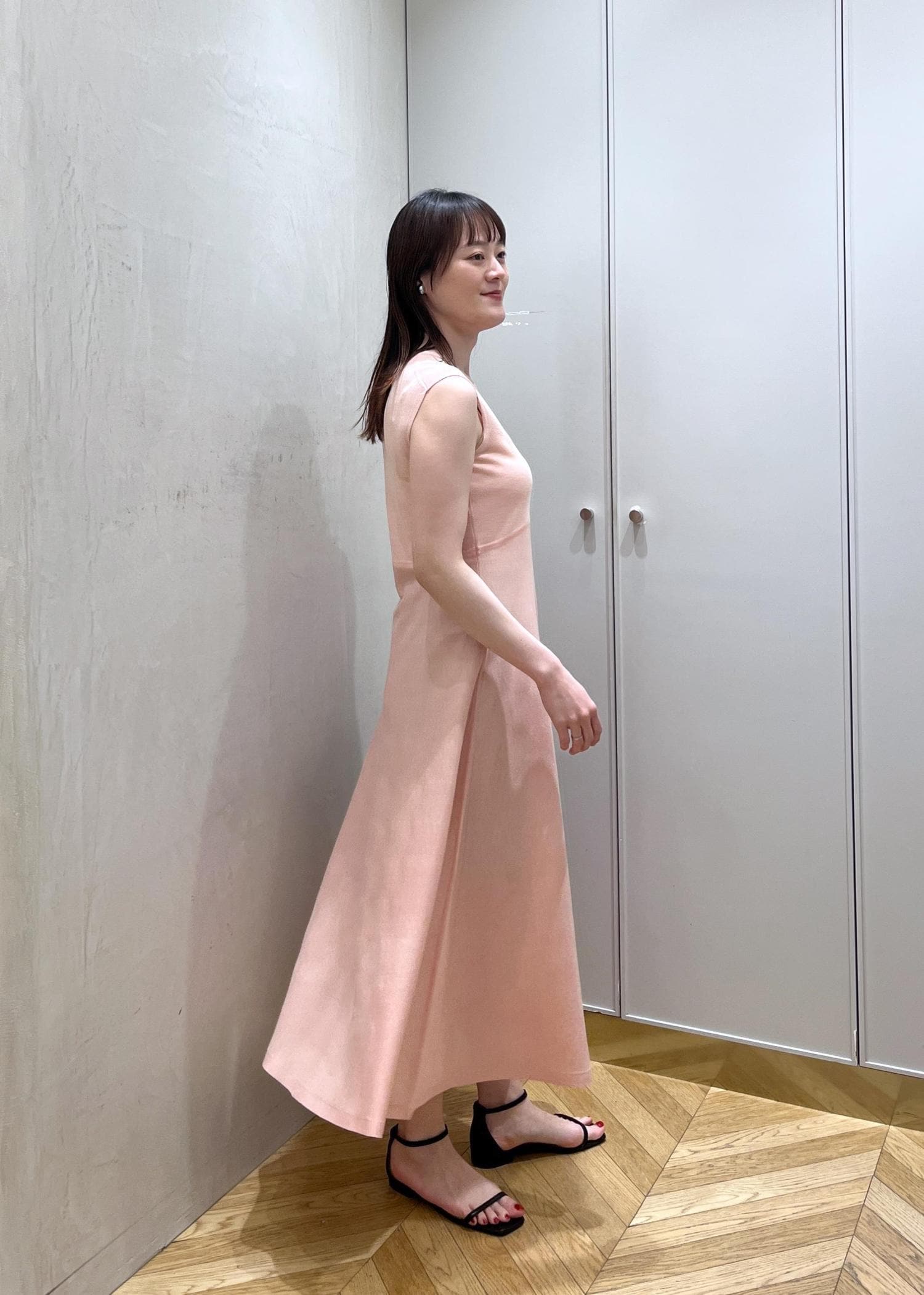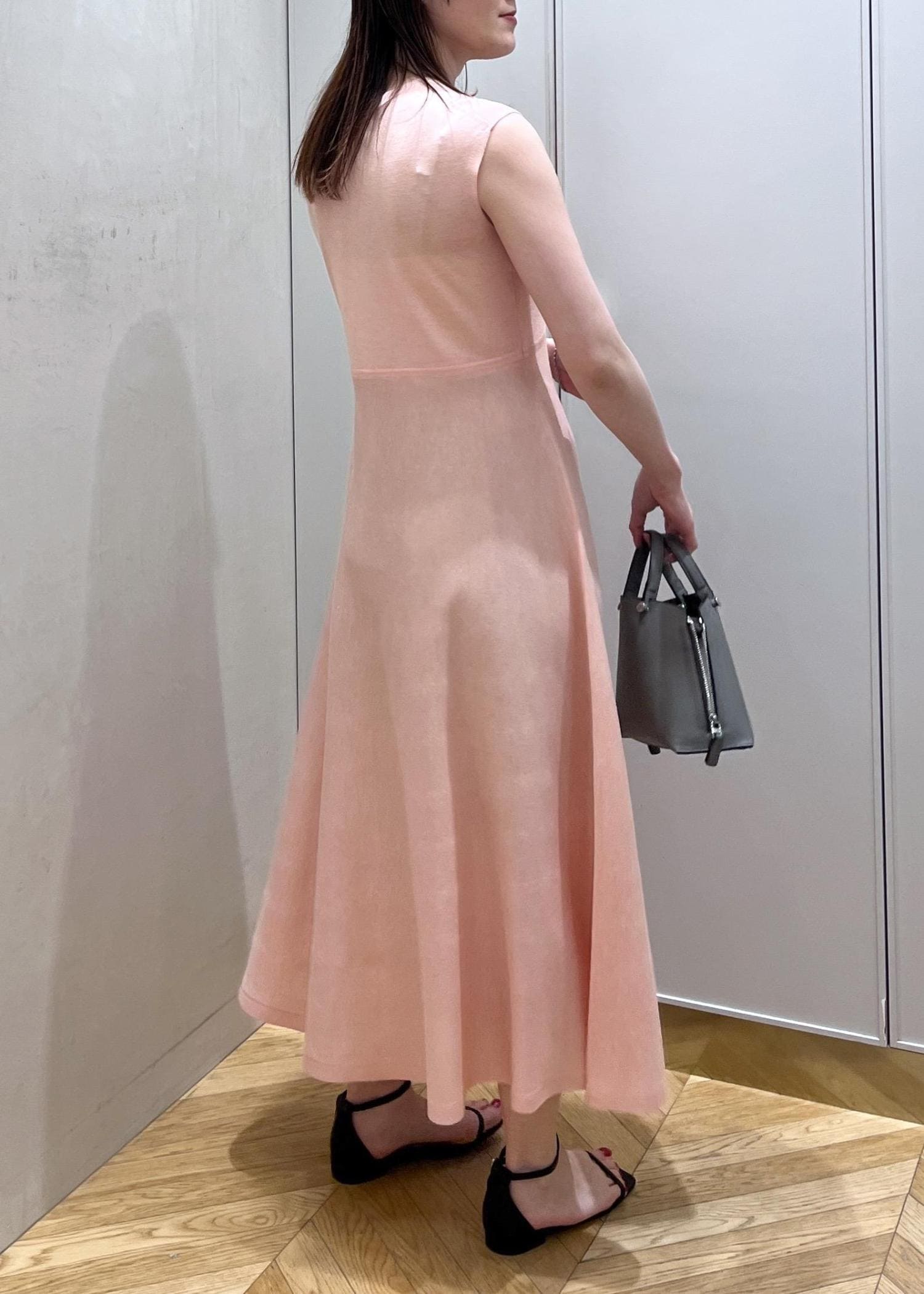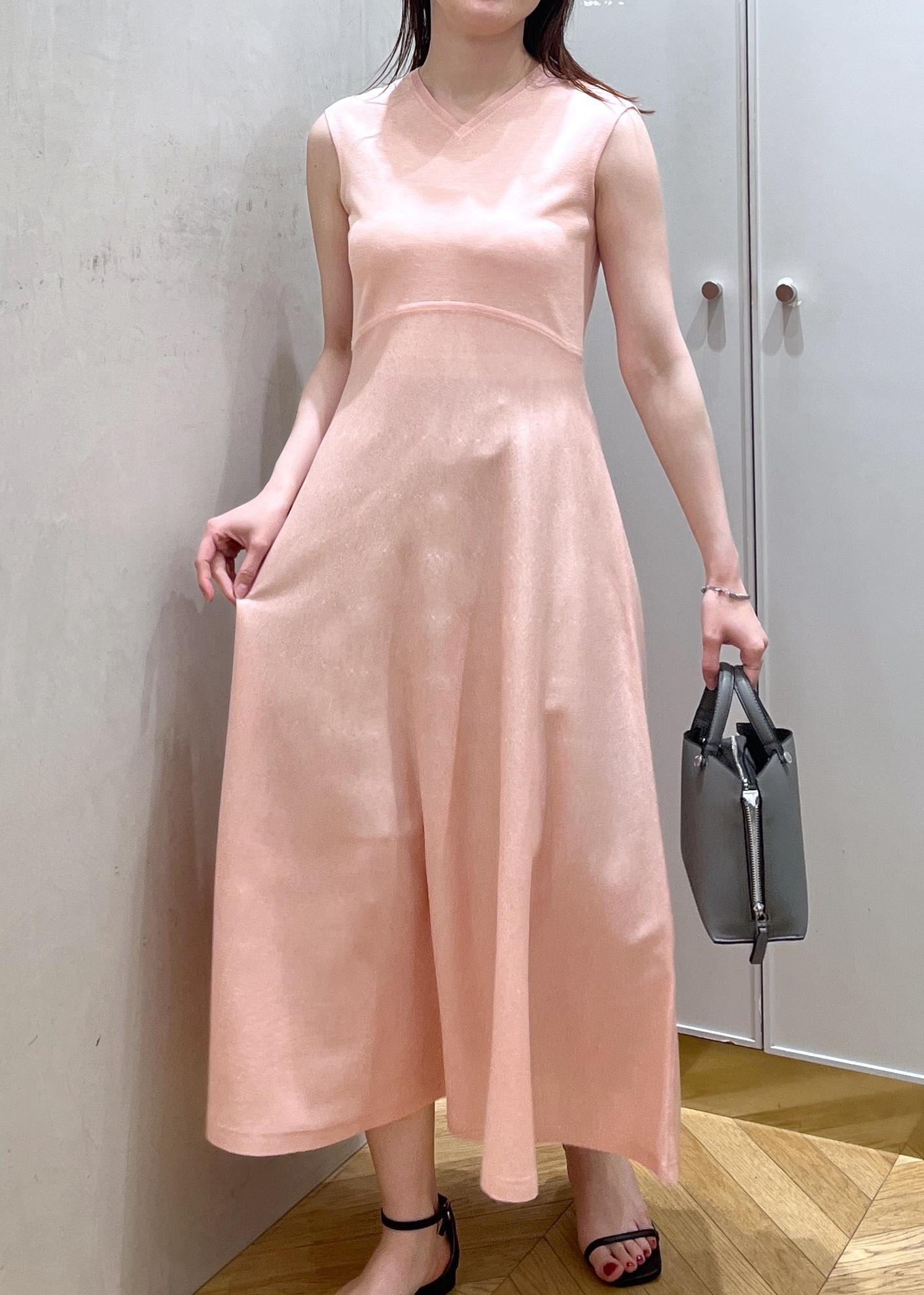 透明感のある馴染みの良いベビーピンクの、ワンピース、カーディガンの2型をラインアップ。